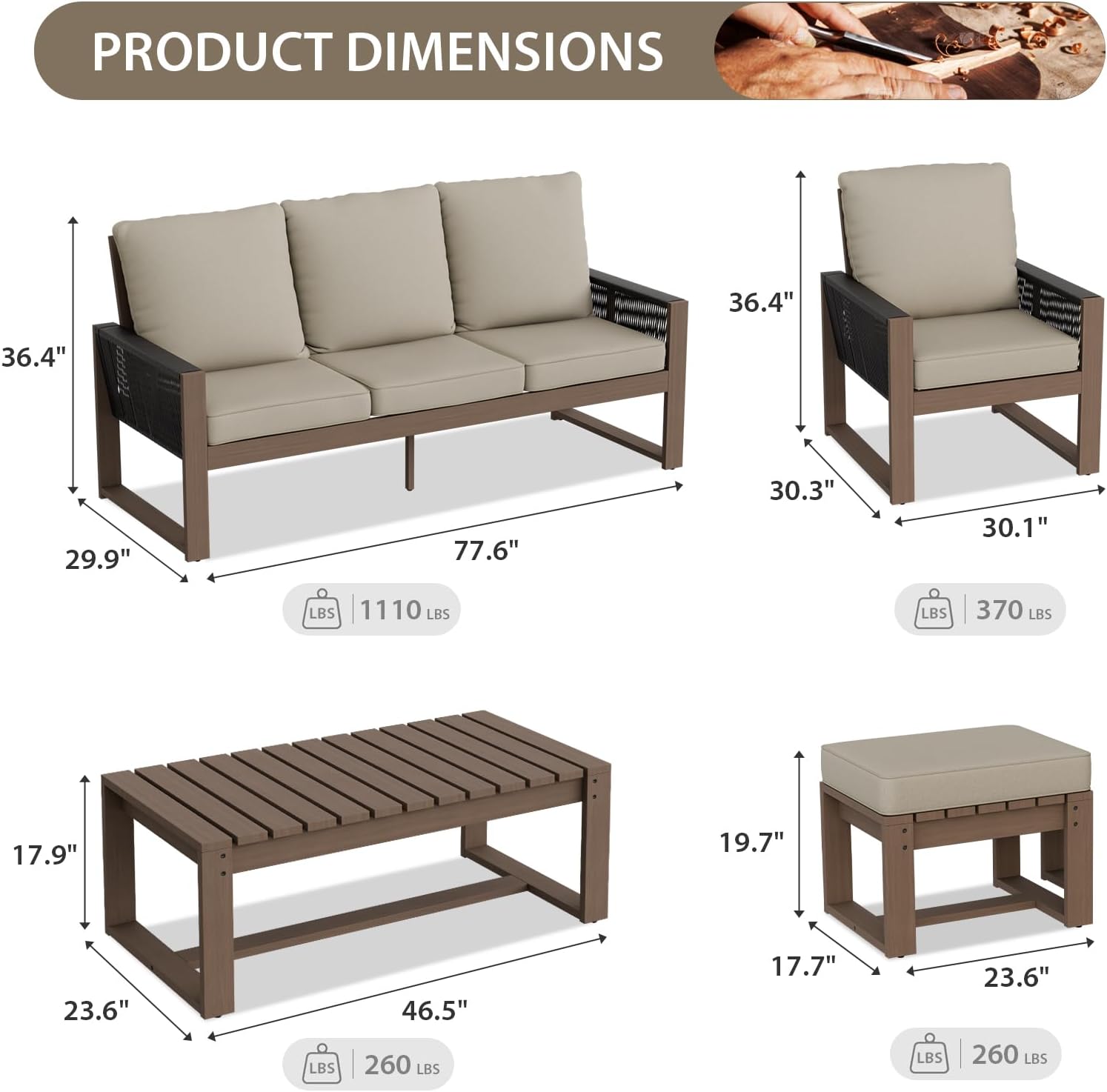 - PREMIUM NATURAL CEDAR WOOD: Crafted with natural cedar wood, this patio furniture set is the perfect blend of strength and style, adding a rustic charm to any outdoor setting. Cedarโs durability makes it resistant to rot, decay, and insect damage, ensuring long-lasting resilience and beauty.