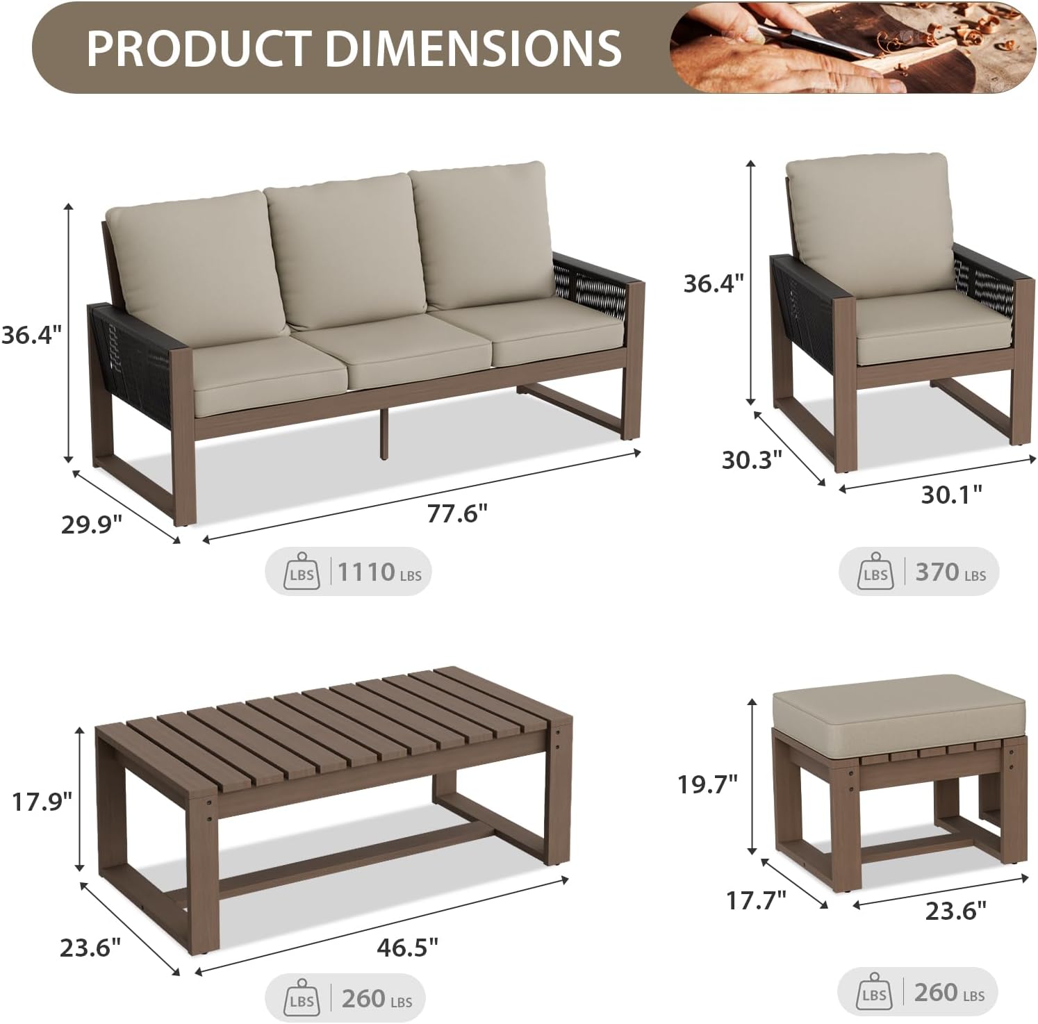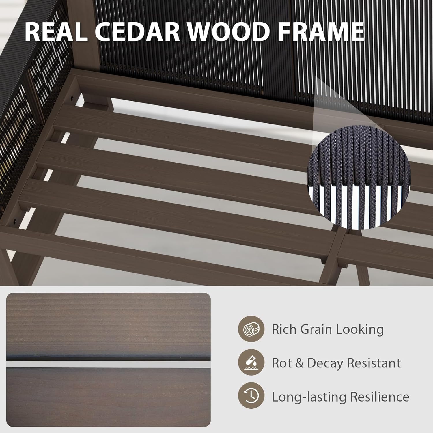 - PREMIUM NATURAL CEDAR WOOD: Crafted with natural cedar wood, this patio furniture set is the perfect blend of strength and style, adding a rustic charm to any outdoor setting. Cedarโs durability makes it resistant to rot, decay, and insect damage, ensuring long-lasting resilience and beauty.