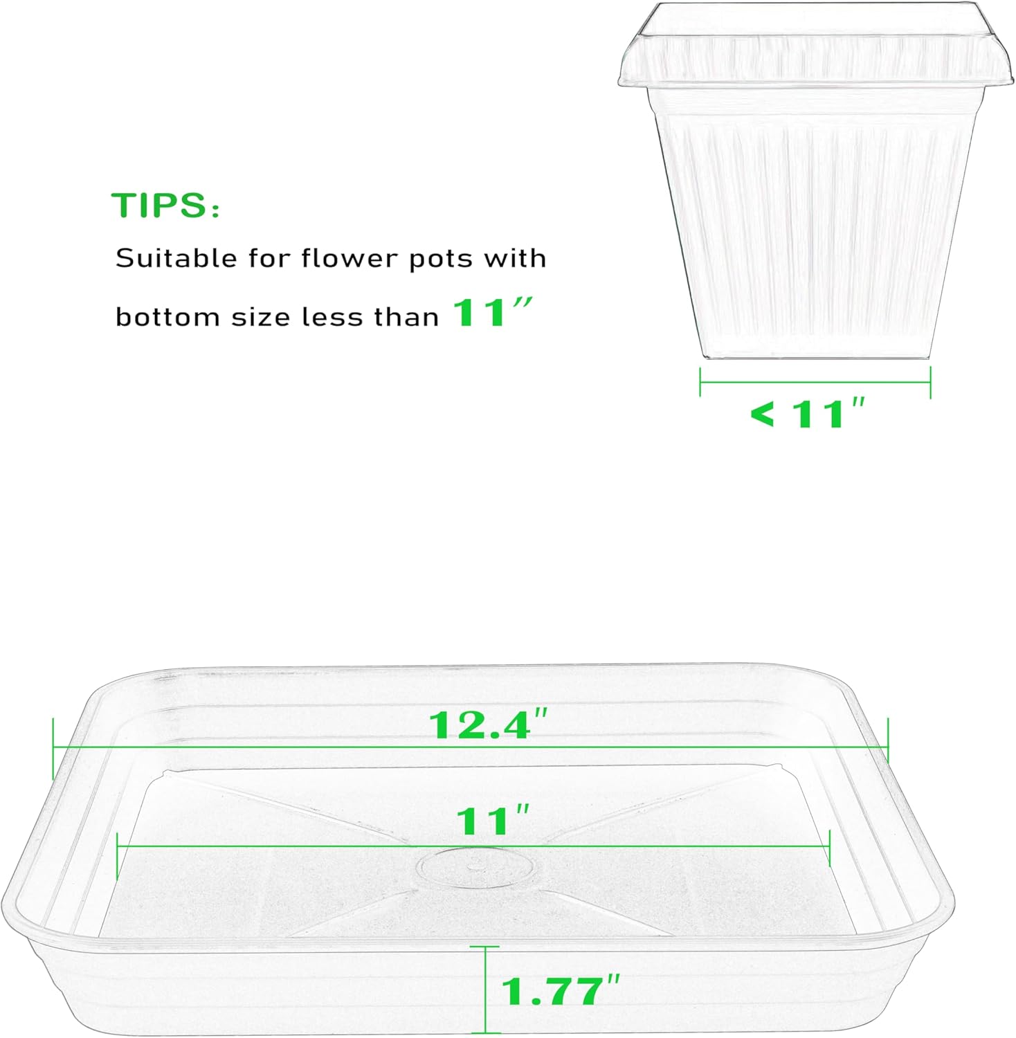 - Plant Trays For Pots: This 12 inch Square trays have certain value of use both indoors and outdoors. Square plant saucer can be placed at the bottom of flower pots to catch the excess water that drains out when watering, thus keeping the floor clean.
