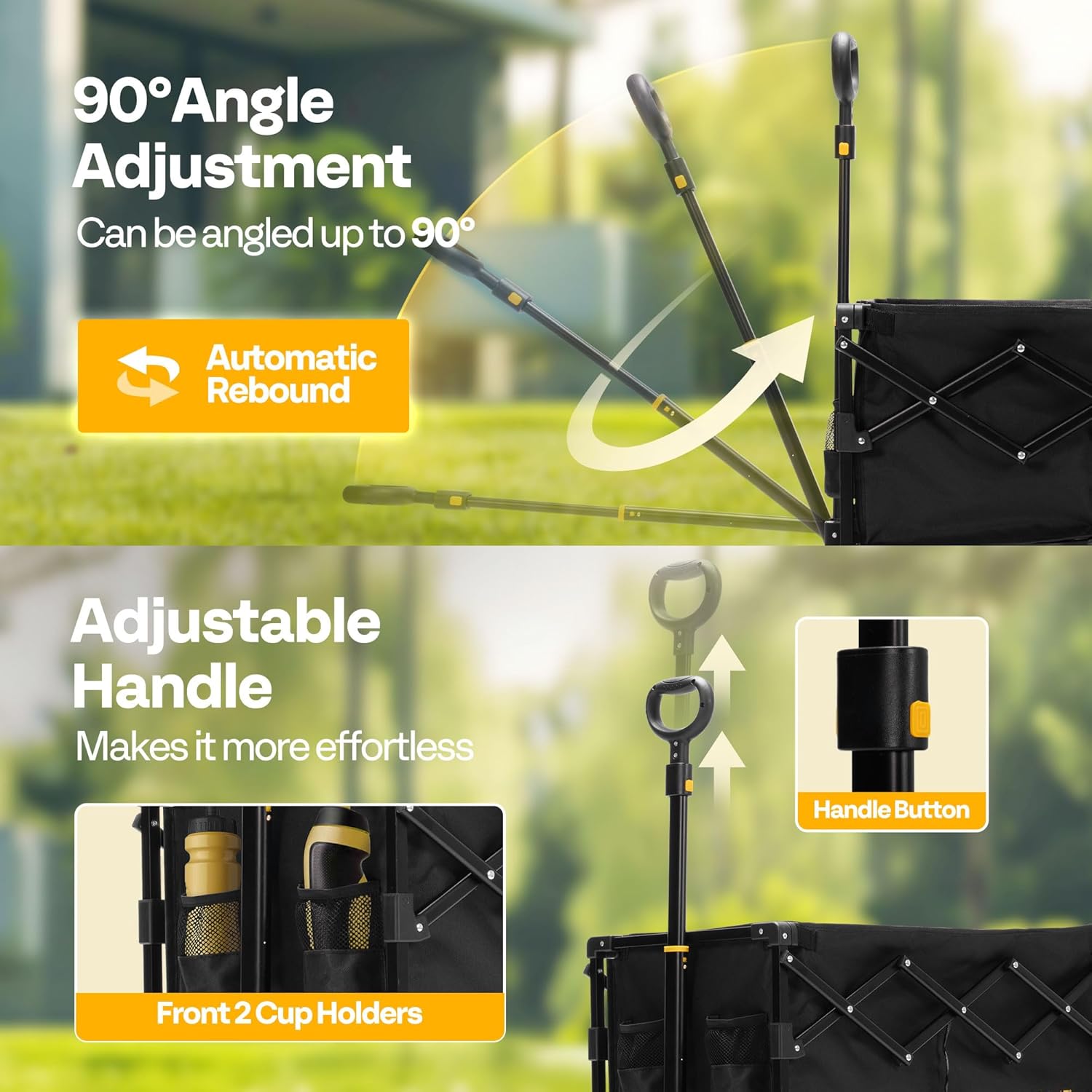 - FLEXIBLE HANDLE: The adjustable handle can be angled up to 90Β° in both upward and downward directions; With its extended adjustable handle, the wagon can be easily maneuvered even when carrying heavy loads, ensuring a smooth and effortless pulling experience
