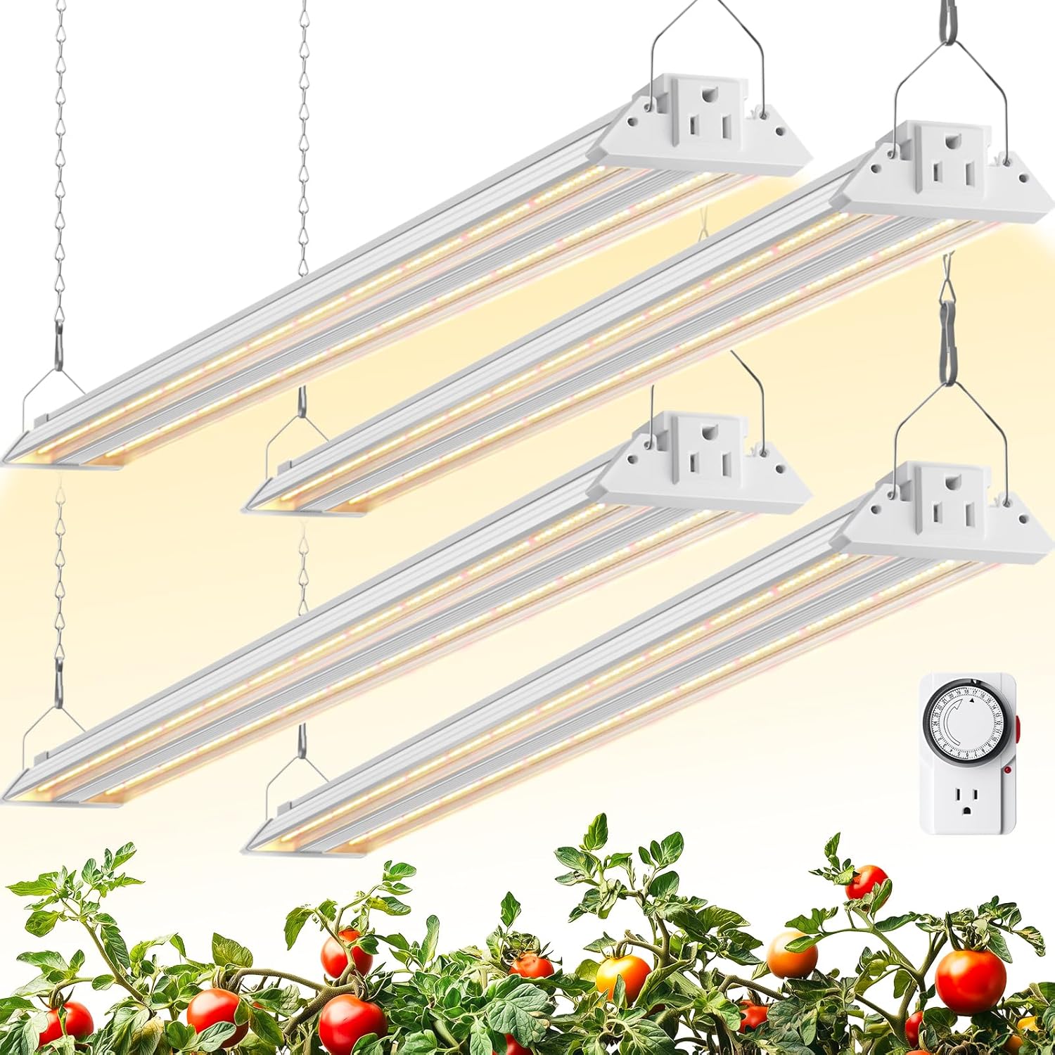 Barrina TX72 Grow Light for Indoor Plants, 4FT, 288W(4 x 72W, 2000W Equivalent), Full Spectrum with 660nm Red LEDs, High PPFD, Mechanical Timer, Linkable, Hanging Plant Lights for Greenhouse, 4 Pack