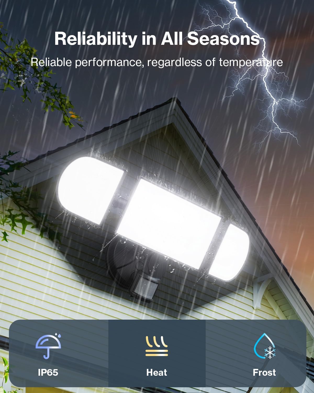 - Built to Last: With an IP65 waterproof rating, these motion detected lights withstand any weather β rain, snow, extreme temperatures, ensuring reliable performance year-round.