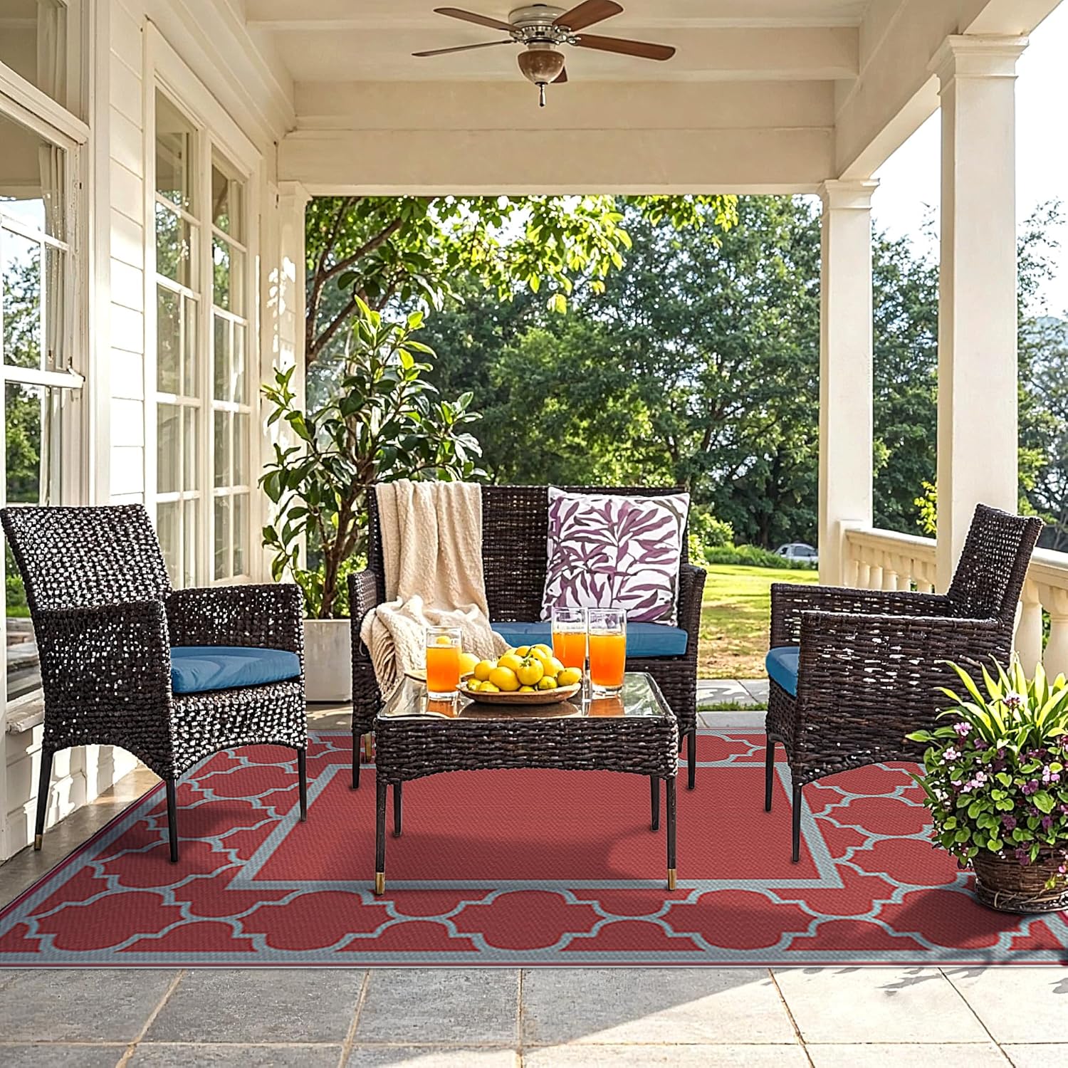 GENIMO 6' x 9' Outdoor Rug Waterproof for Patio Decor, Foldable Reversible Plastic Straw Area Rugs Mat for Camper, Outside Carpet for Rv, Deck, Porch, Picnic, Beach, Balcony, Red & Grey