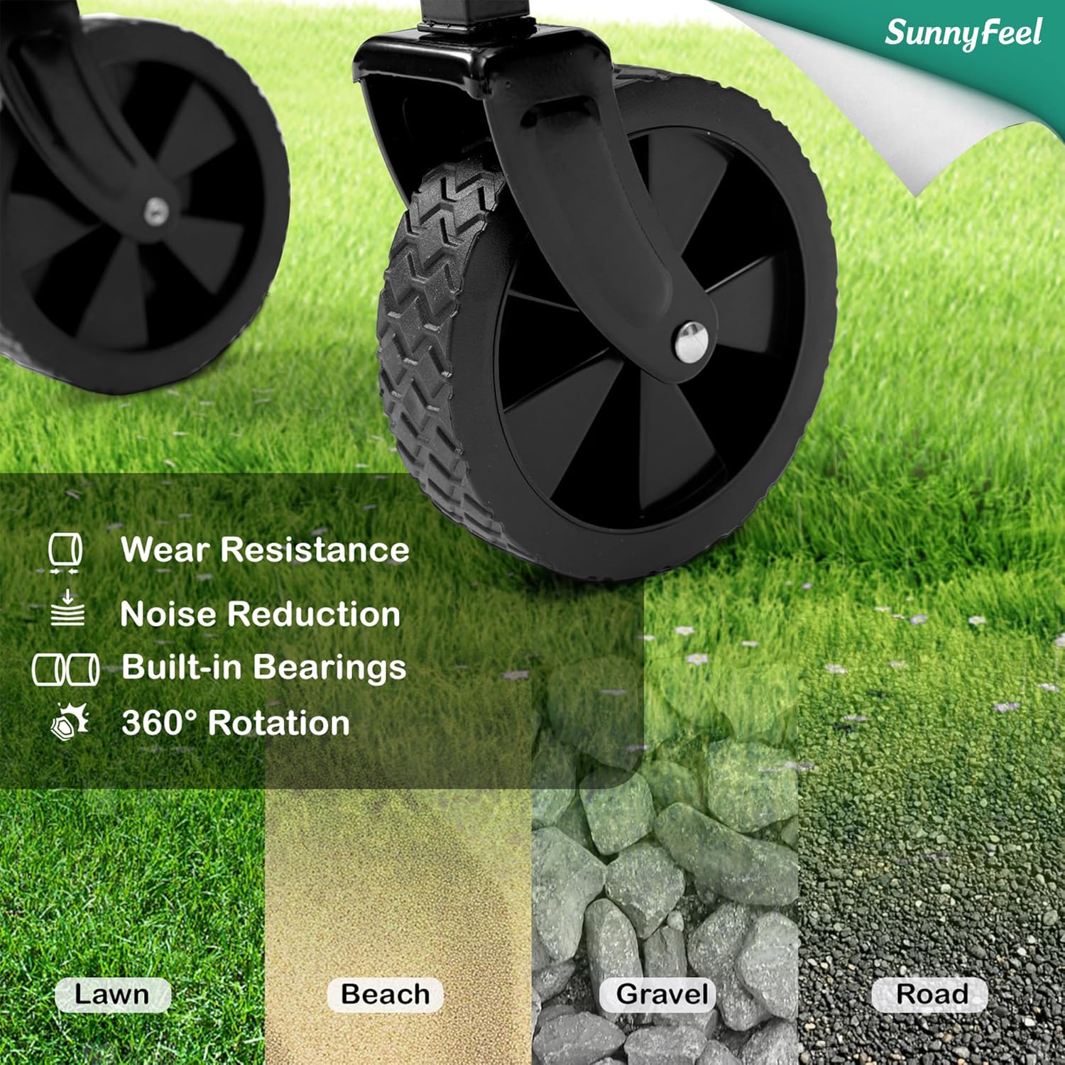 - 【Thickened 600D Oxford Fabric & Detachable】The SunnyFeel wagon is built to effortlessly manage heavy loads with its expansive interior and impressive weight capacity. Featuring a high-strength steel frame and durable double-layer 600D Oxford fabric, this folding camping wagon supports up to 330LBS and the fabric is derachable, which facilitates storage and cleaning
