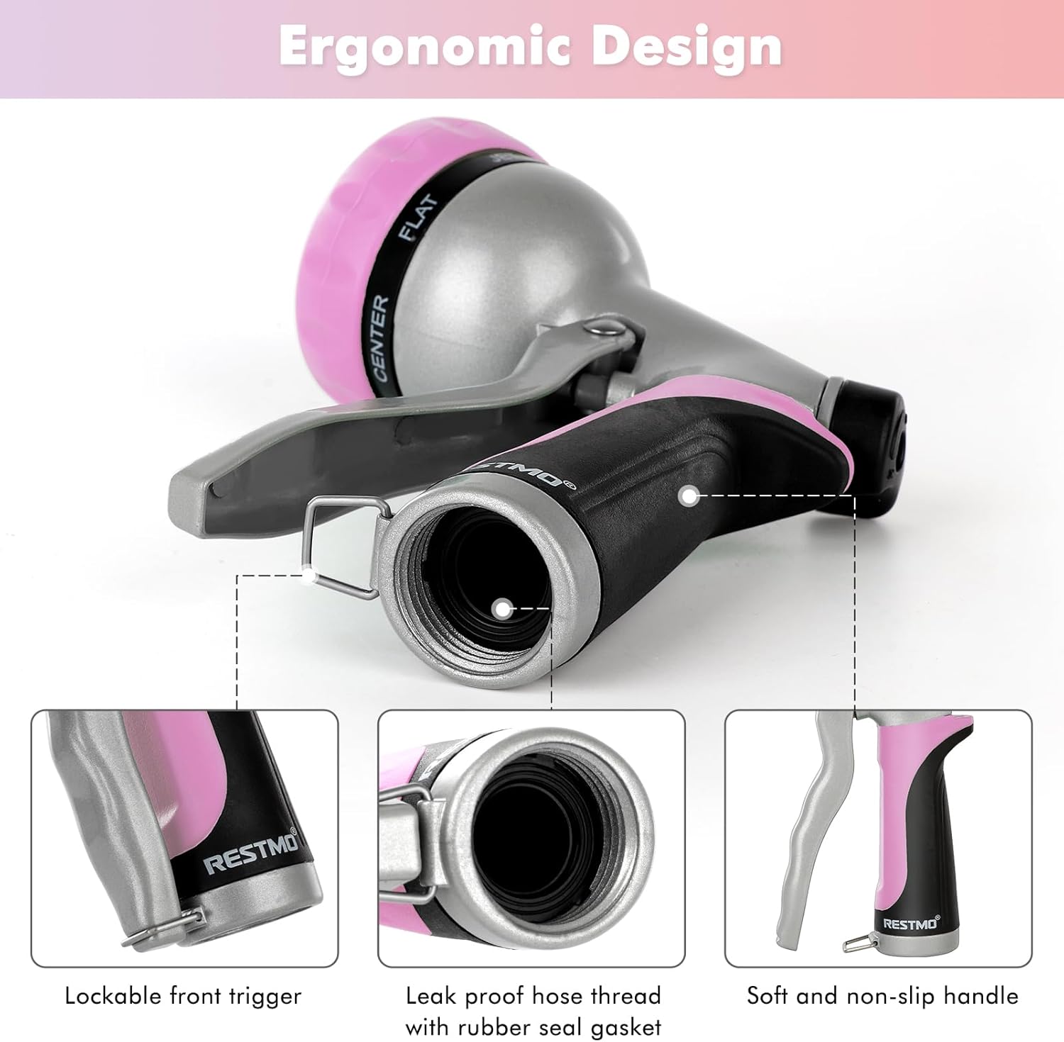- ERGONOMIC DESIGN: Coated with the soft TPU and non-slip grip, this low-profile hose nozzle adds comfort and avoids hand fatigue. The pistol grip front trigger is easy to hold and can be locked anytime.