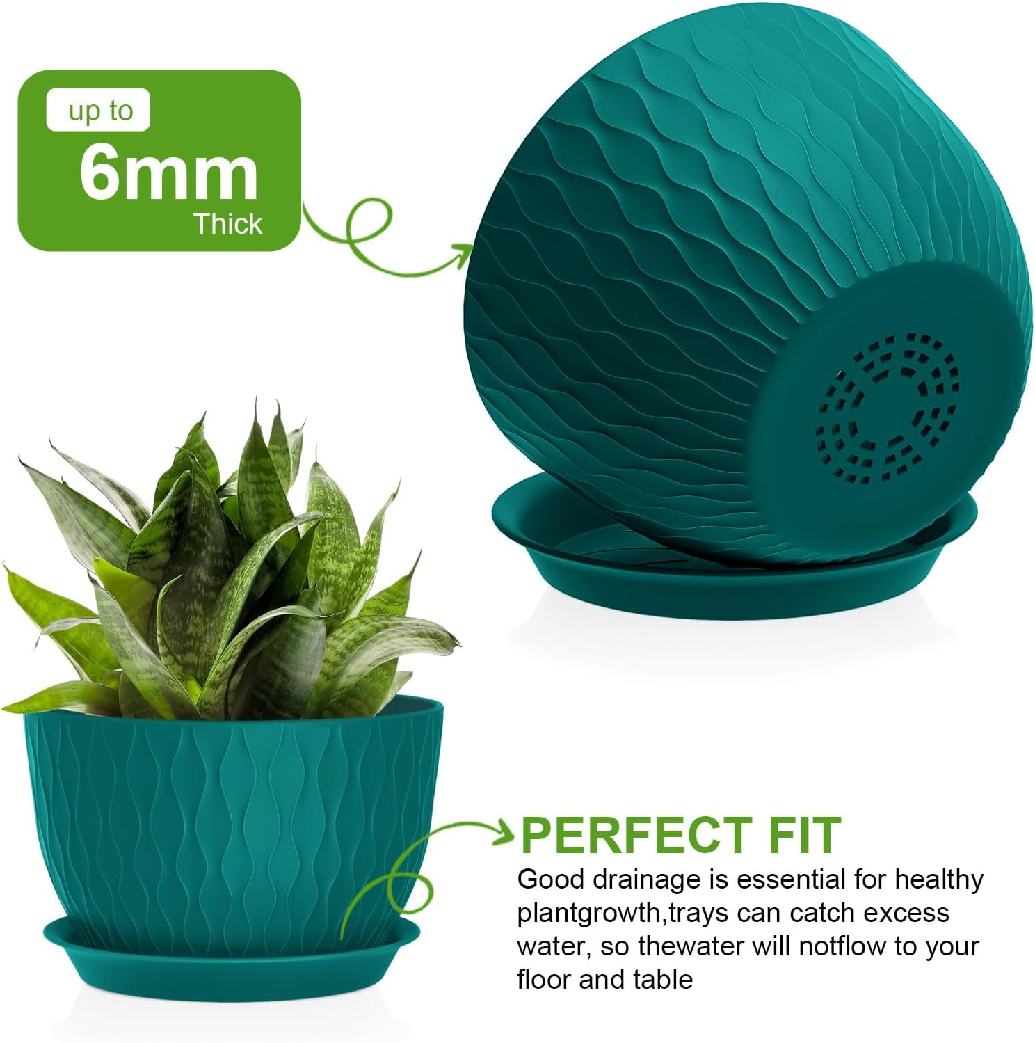 Plant Pots 12/10/9 Inch Pots, Set of 3 Plastic Planters with Drainage Holes and Saucers,Plastic Flower Pots,Nursery Planting Pot for Indoor Out Door Plants(Teal)