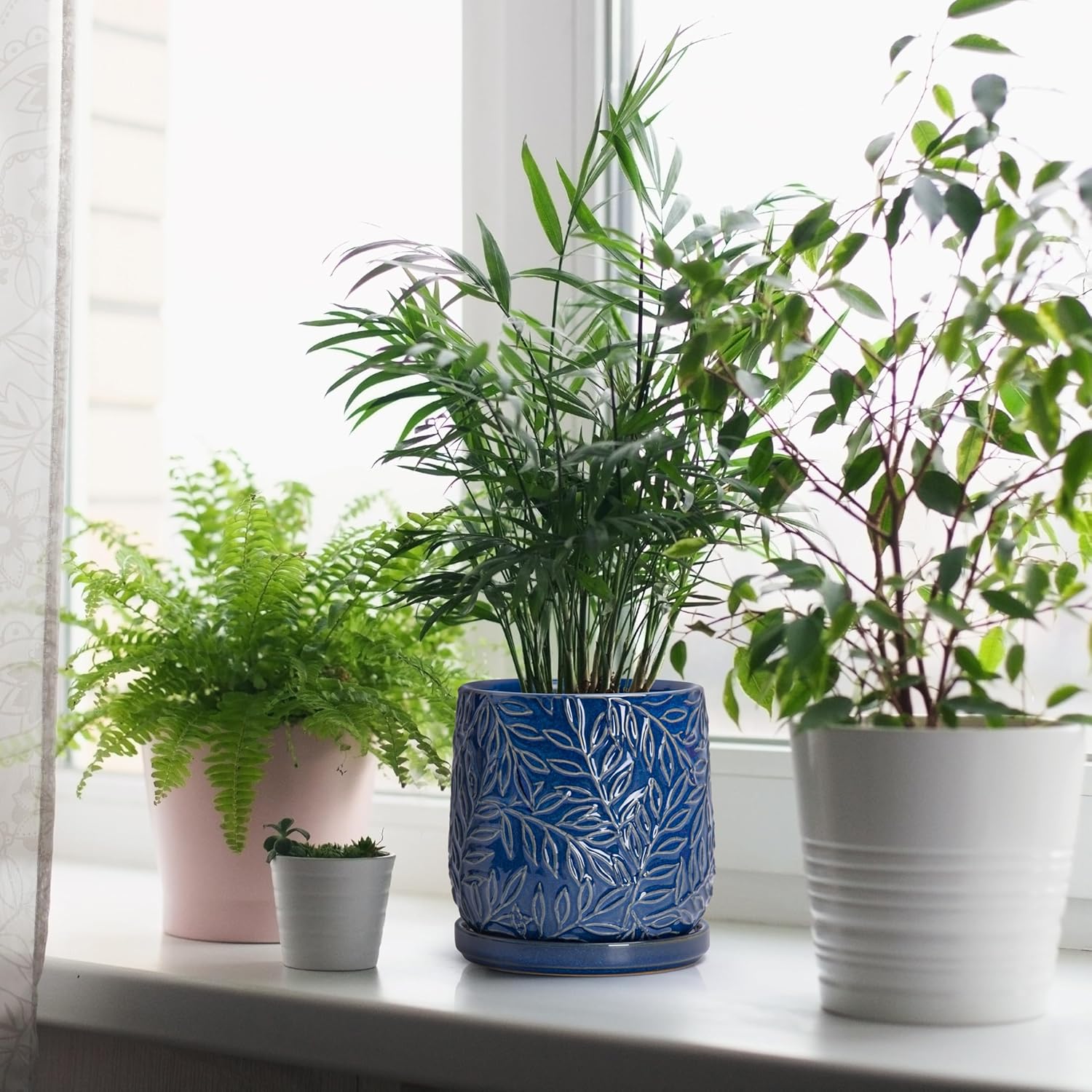 • Drainage Hole and Saucer: Each pot comes with pre-drilled drainage hole and matching ceramic tray to drain excess water.