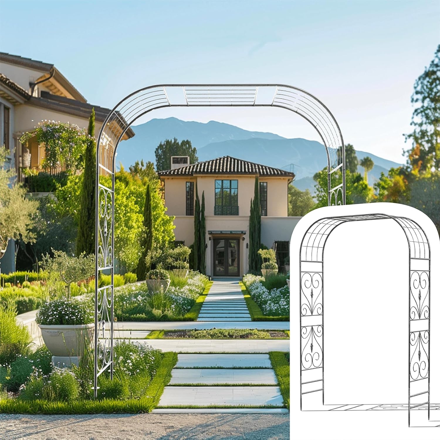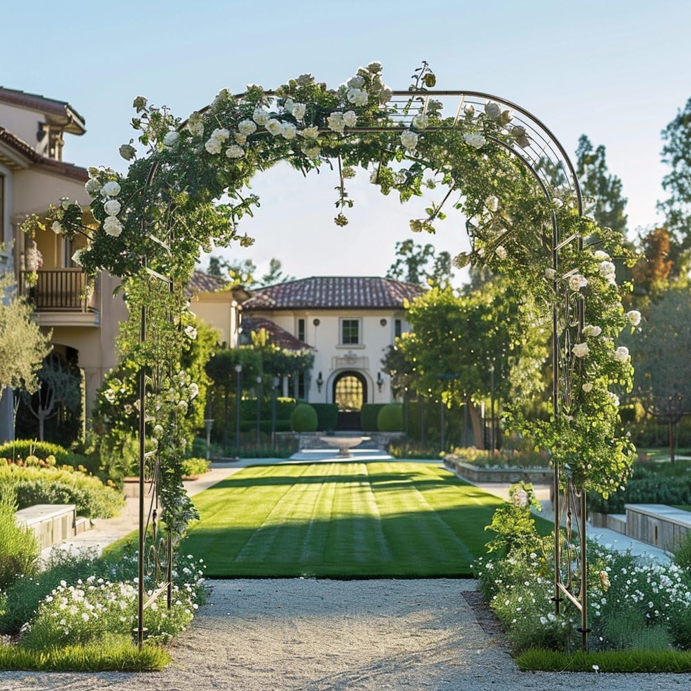 - Heavy-Duty Wrought Iron Construction: Crafted from strong wrought iron, this garden arch features a rust-resistant finish that protects it from rain, wind, and sunshine. Built for years of outdoor use, it stands strong in any weather, adding lasting beauty and functionality to your garden