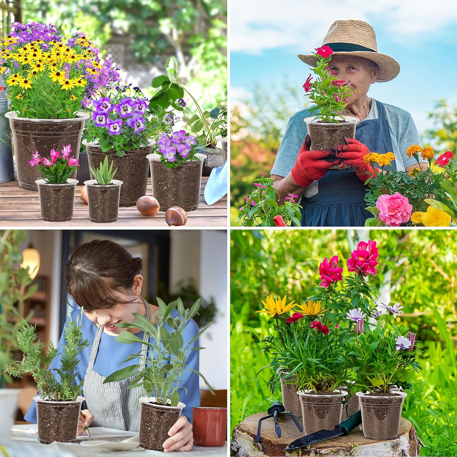 - What You Get:12 pcs 3.5" plastic plant pots, 12pcs 4" plastic plant pots, 12pcs 5" plastic plant pots ,12pcs 6" plastic plant pots, 12pcs 7" plastic plant pots and 50 plant labels .Notice: Plants NOT Include