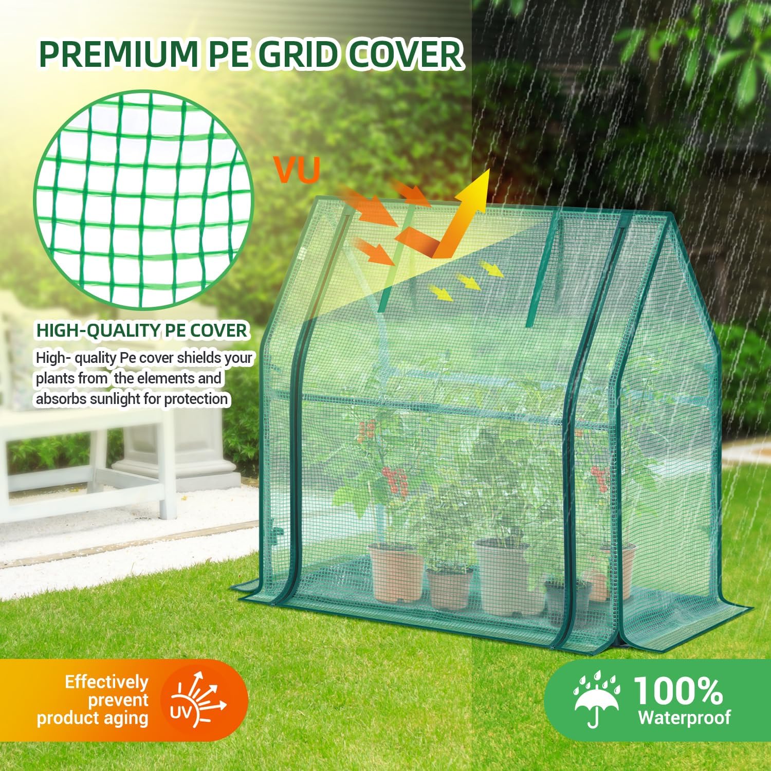 - Convenient Design: The Ohuhu Tabletop Greenhouse comes with a removable waterproof PE mat that acts as a barrier against dirt and water, reduce your cleanup trouble. The zippered door allows for easy watering and fertilizing, while also providing excellent ventilation when rolled up