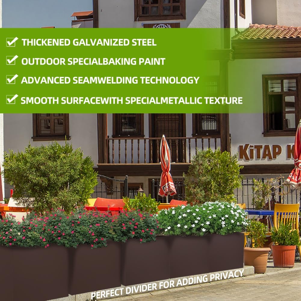 Metal Tall Long Planter Box Large Rectangular Planter Flower Pot with Drainage Holes for Indoor Outdoor Deck Porch Garden Home Patio Front Door (Espresso, L)