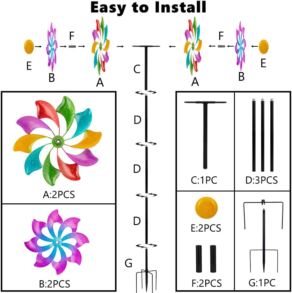 - Easy to Install: Simply tighten the components of wind sculptures & spinners and insert them into the soil, then you will get a beautiful garden wind spinners decoration