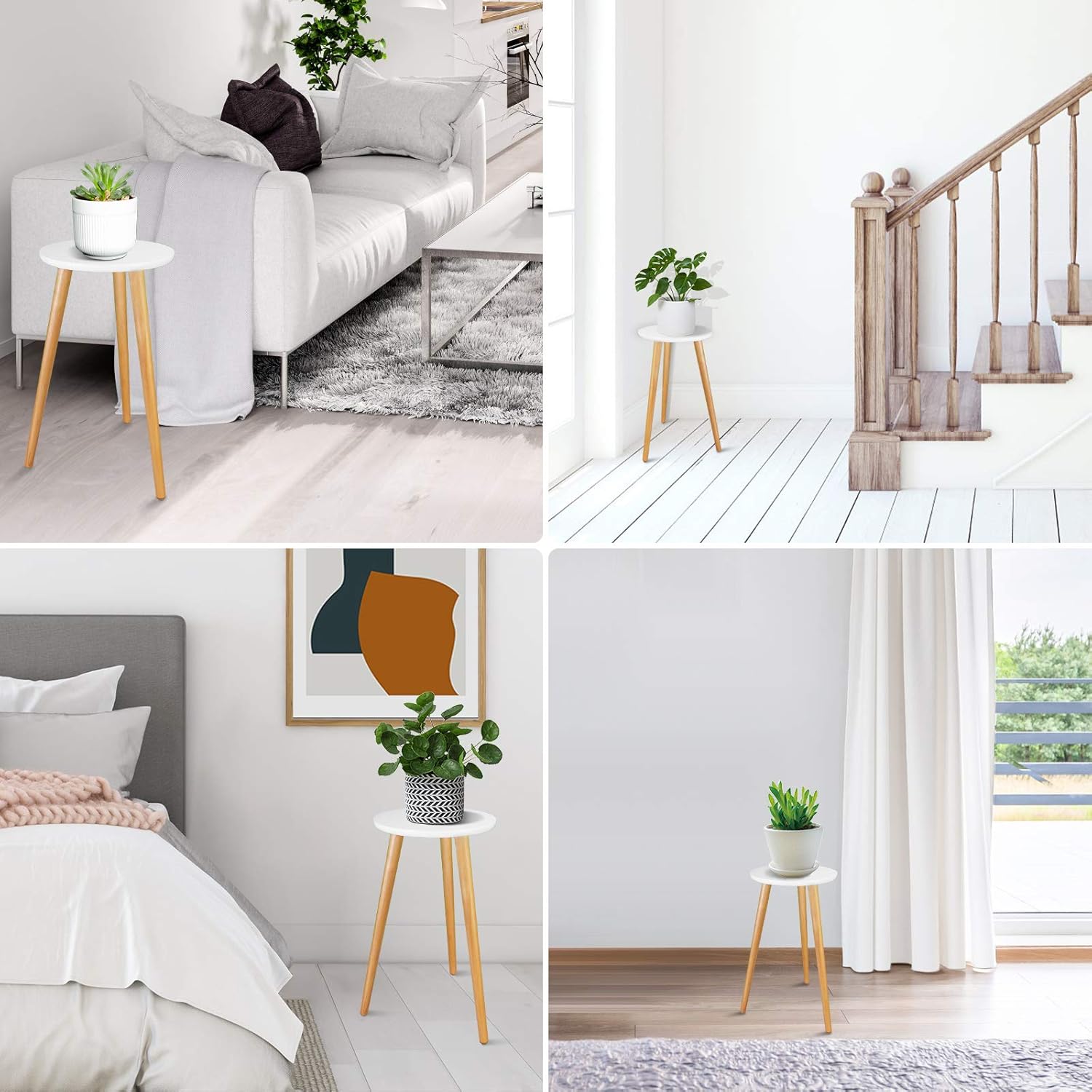 Uneedem Indoor Plant Stand - Mid Century Wooden Plant Table, Tall Holder for Flower Pots, Small Round End Table (A3-White, High: 20.5")