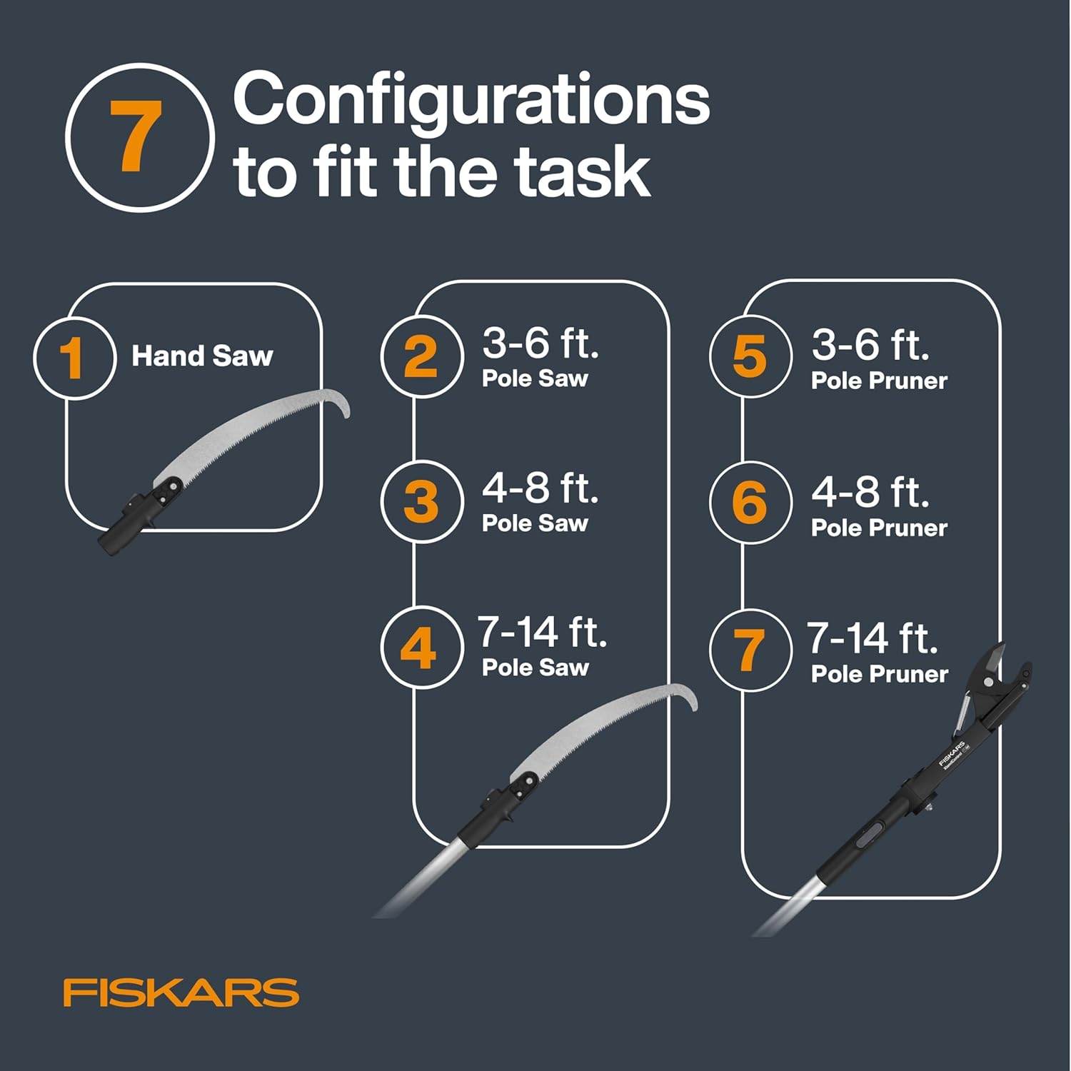 Fiskars XtendControl Extendable Tree Pruner (14 ft), Adjustable Branch Trimmer w/Fixed Pruning Head, 15" X2 Hook Bill Saw, 3-6 ft & 4-8ft Extension Poles, and Automatic Cord Reel for Precise Cuts