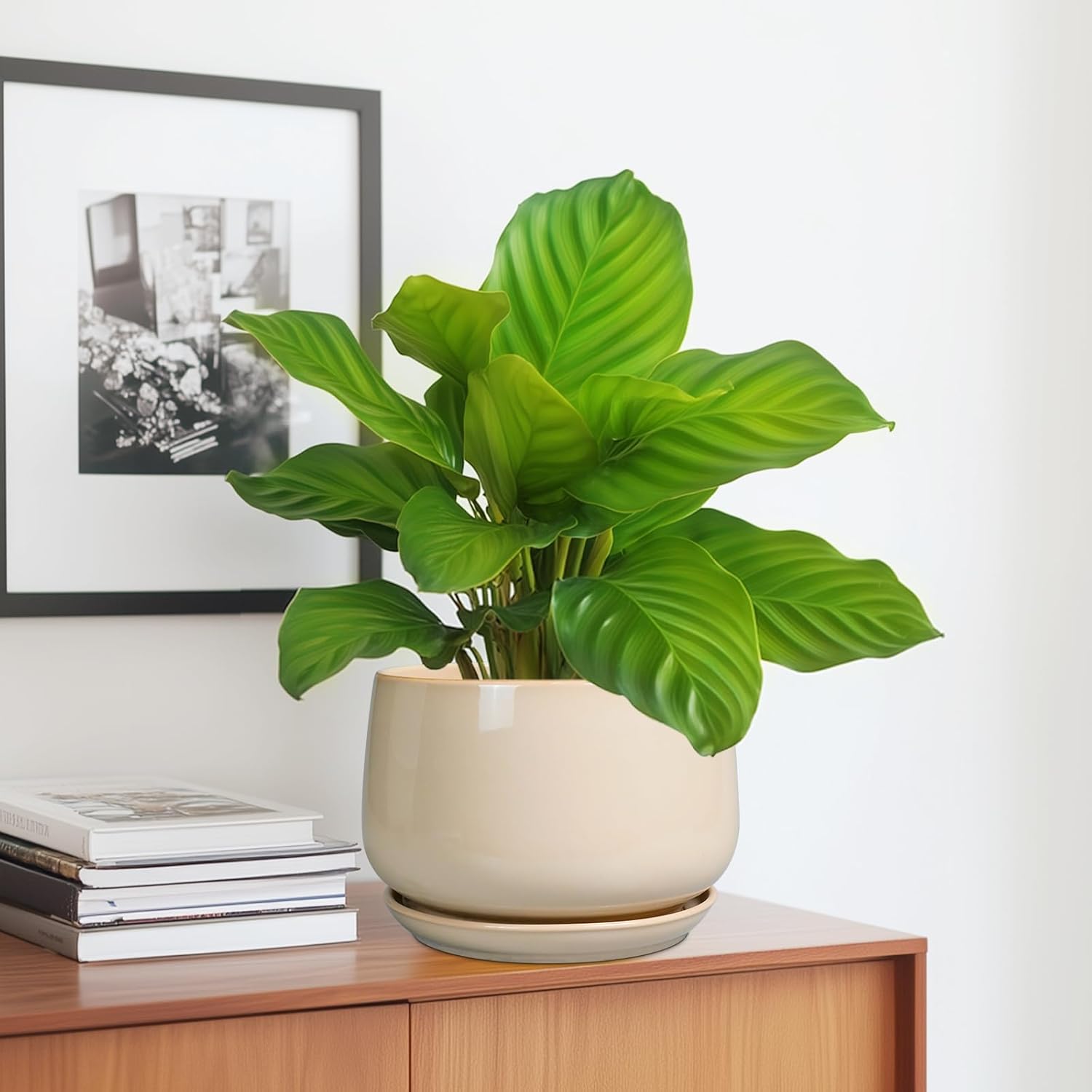 - Modern Planter: Adopting elegant modern design, classic ceramic indoor plant pots with curved contours, Beige planter add highlights to your indoor or outdoor space decoration, suitable for various styles of home decor, room decor, bathroom decor, living room decor, office decor, garden deocr