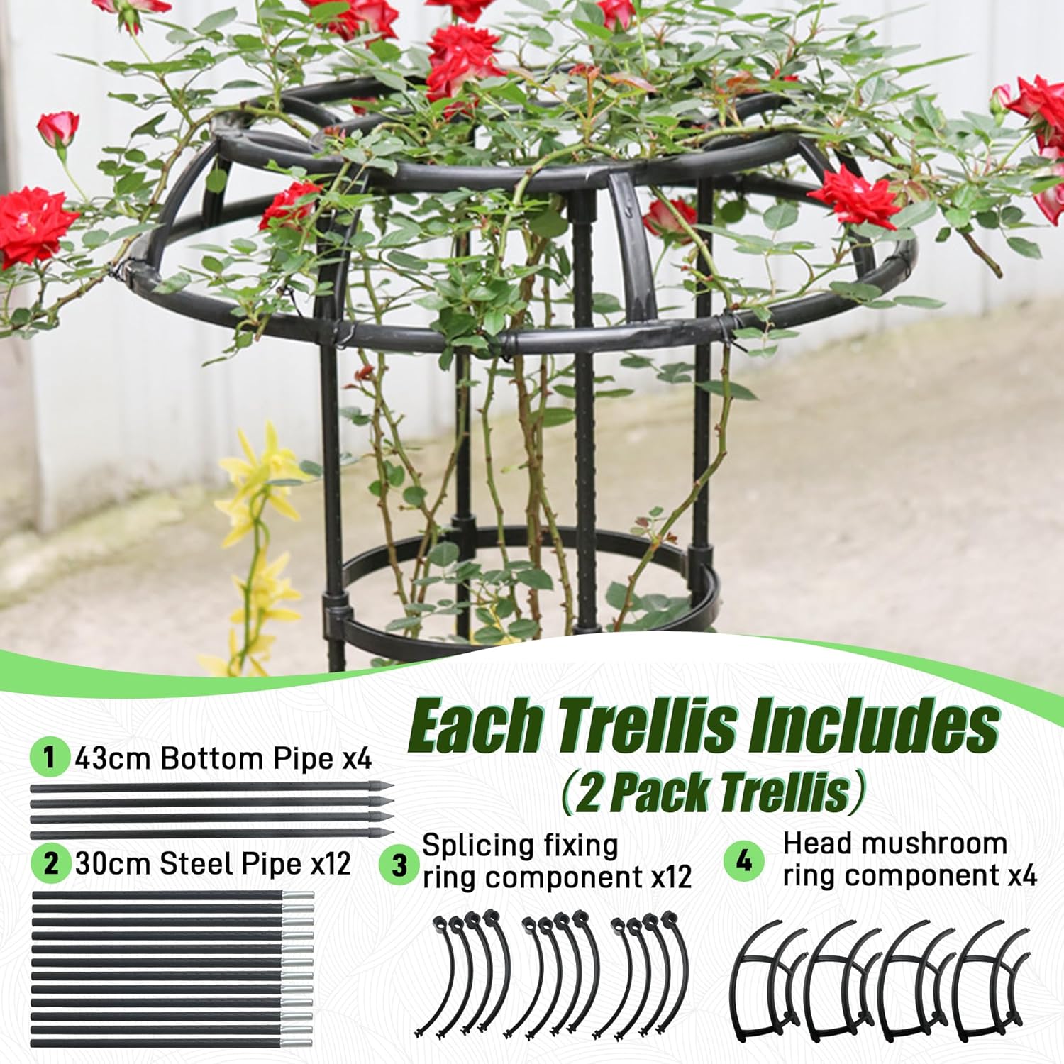 - 【Easy To Install】Our garden trellis for climbing plants structure is simple, only need to assemble each component in order according to the manual, no screws or any specialized tools for assembly. NOTE: Pre-drill holes in the ground, install the longest four plastic pipes to the bottom layer to help push the trellis for potted plants into the ground. Suggest the stake length that insert into soil more than 6inches for great stability.