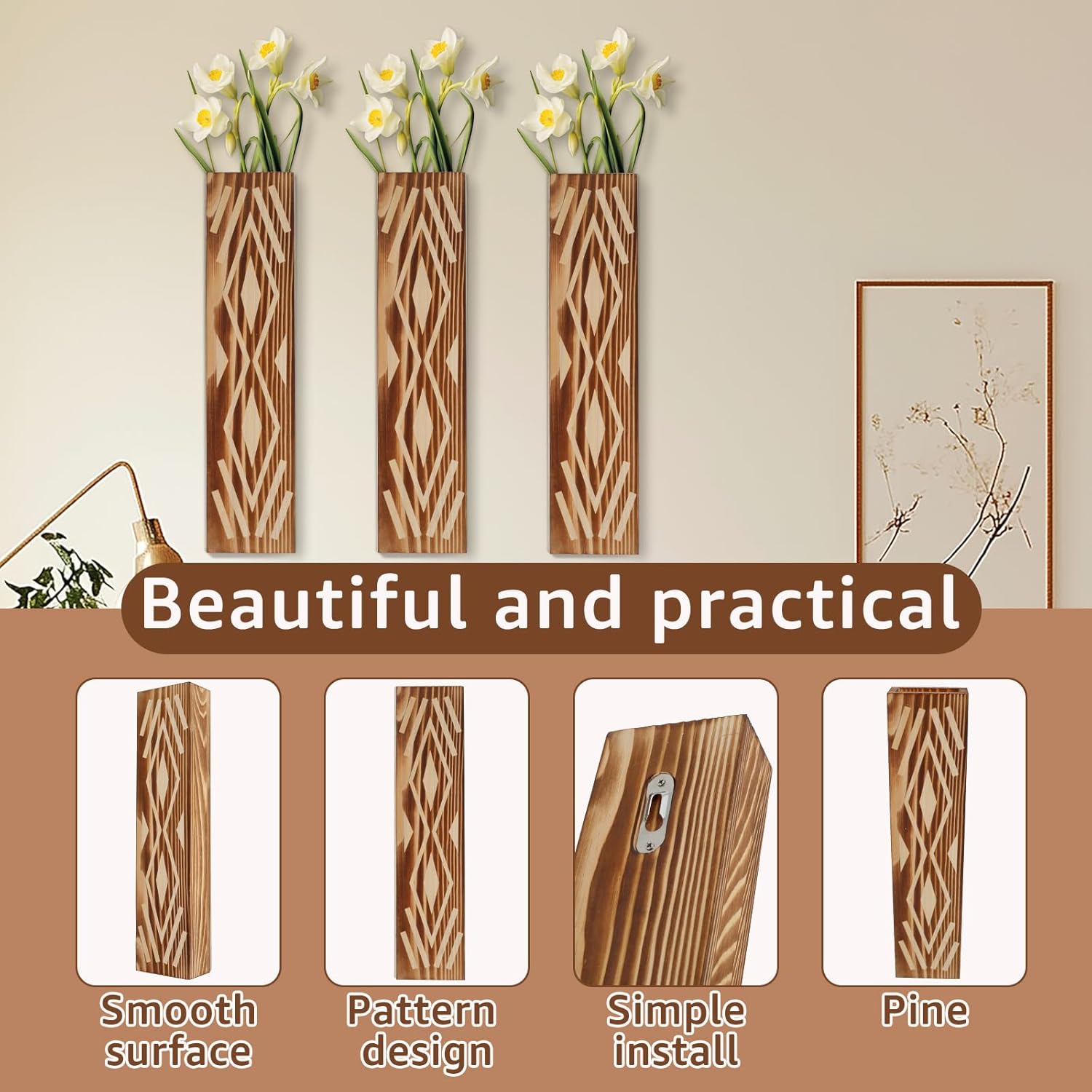 - Suitable Size: This set includes 3 wood hanging vases, each wood hanging vase measures 30 x 7 x 4 cm / 11.8 x 2.8 x 1.57 inches, which is enough for wall decoration