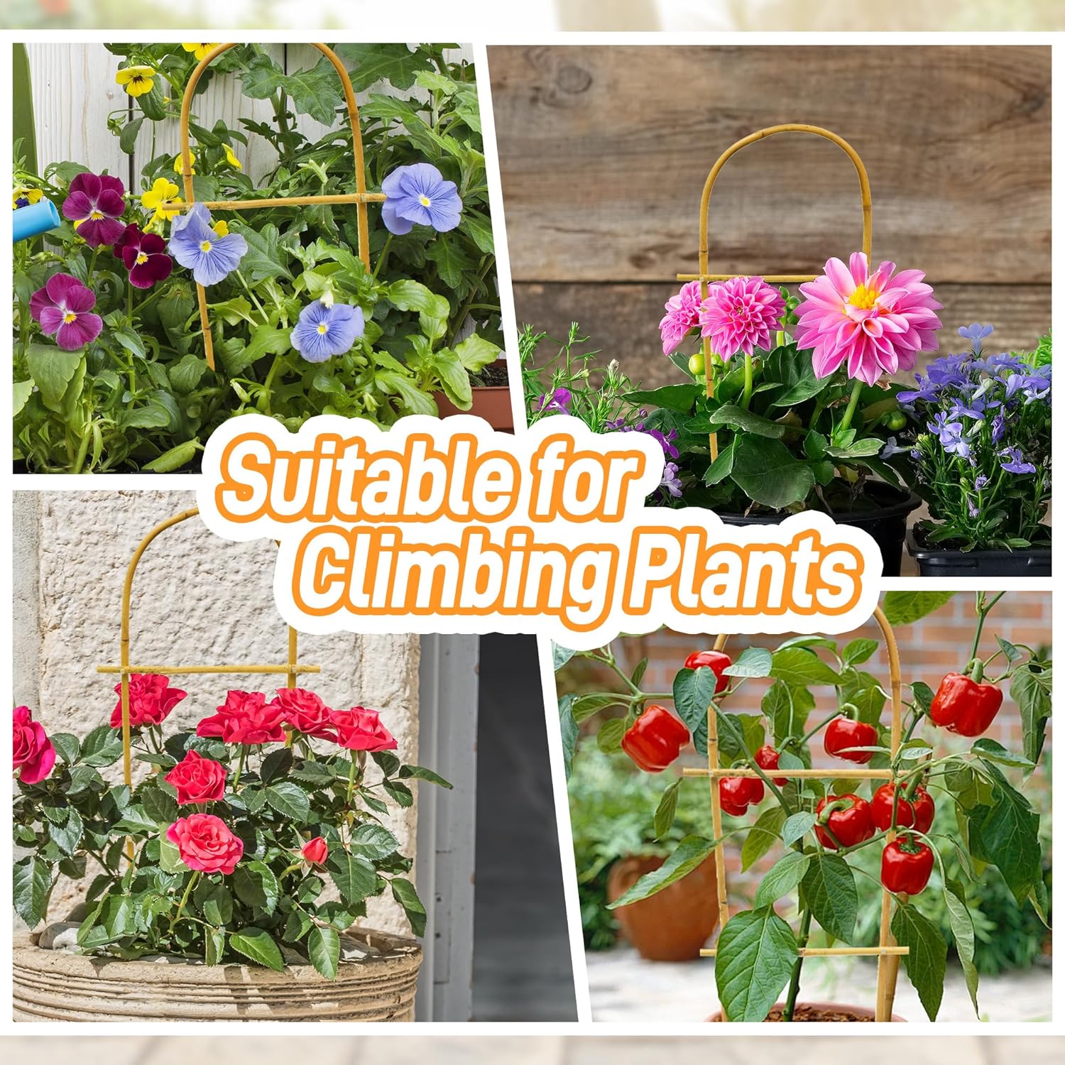 - 【Wide Applications】 Designed for various climbing plants, flowers, vines, and vegetables, including ivy, wisteria, morning glory, peas, jasmine, cucumber, tomato, clematis, and more, it offers versatile support for a wide range of climbing plants.