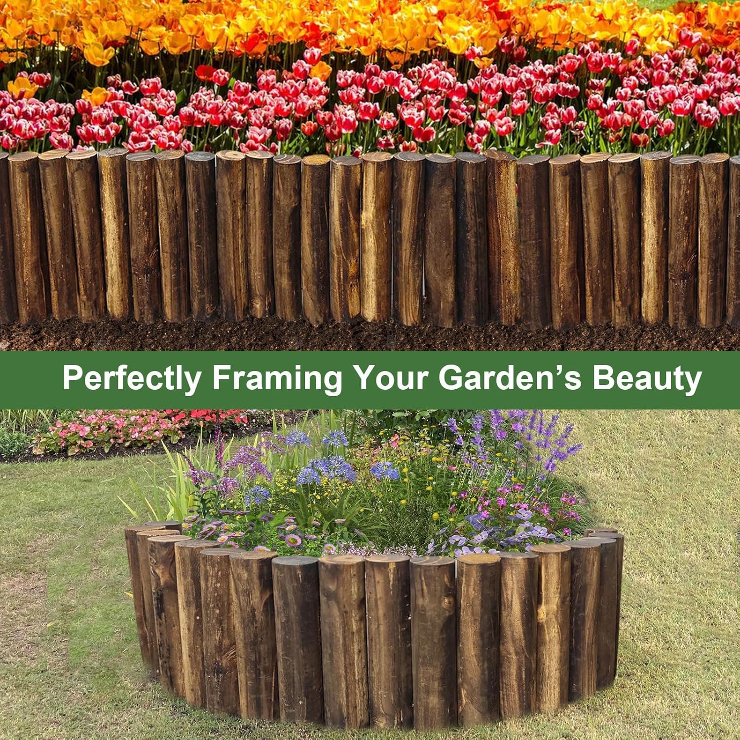 Wood Garden Fence, Wooden Solid Log Edging Border Decorative for Flower Bed Barriers and Landscape Fencing