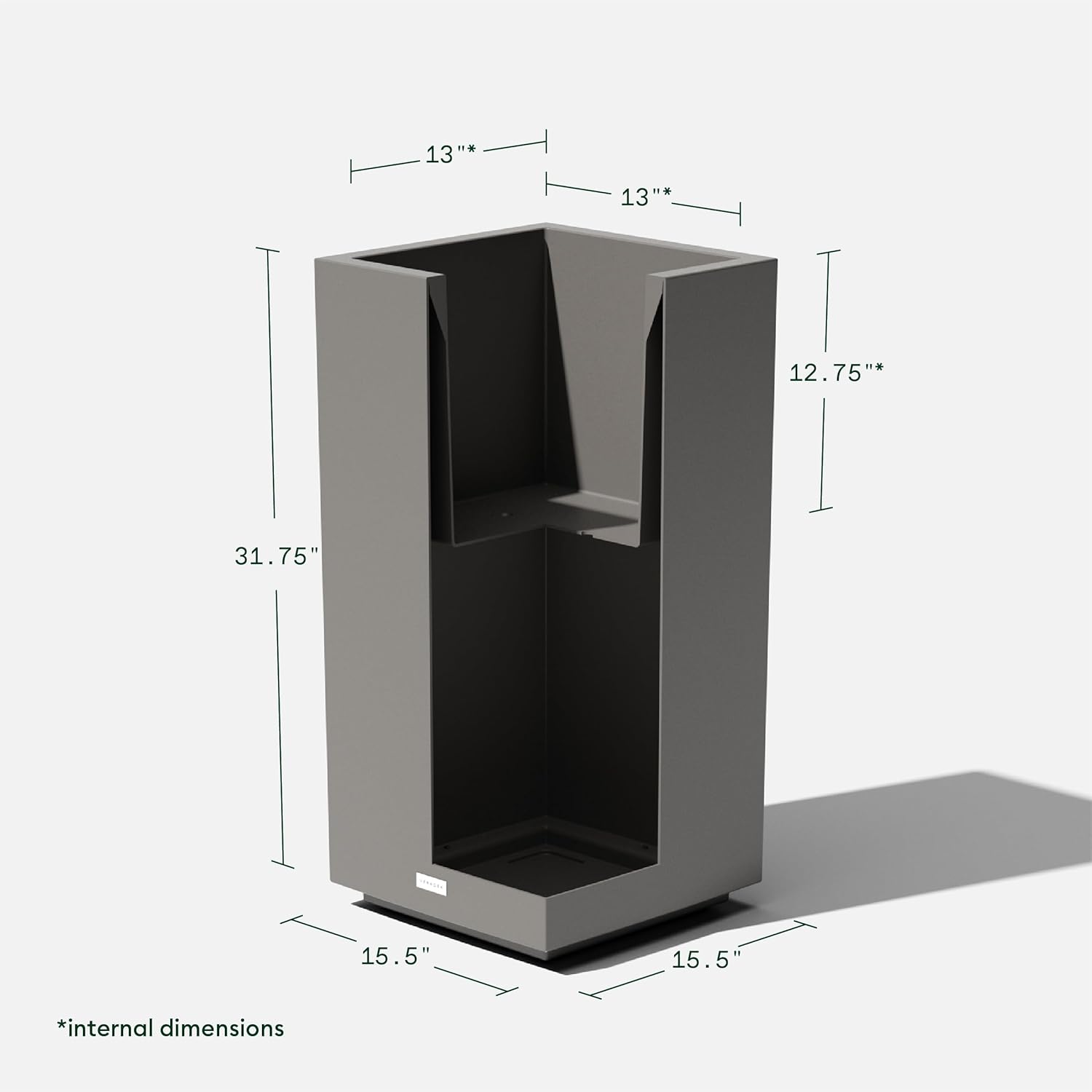 - DIMENSIONS & DETAILS: This double-walled planter’s exterior dimensions measure 31.75” in Height, 15.5” in Width, 15.5” in Length. With the removable insert bucket installed, the interior dimensions measure 12.75” in Height, 13” in Width, 13” in Length. It comes fully assembled for easy use