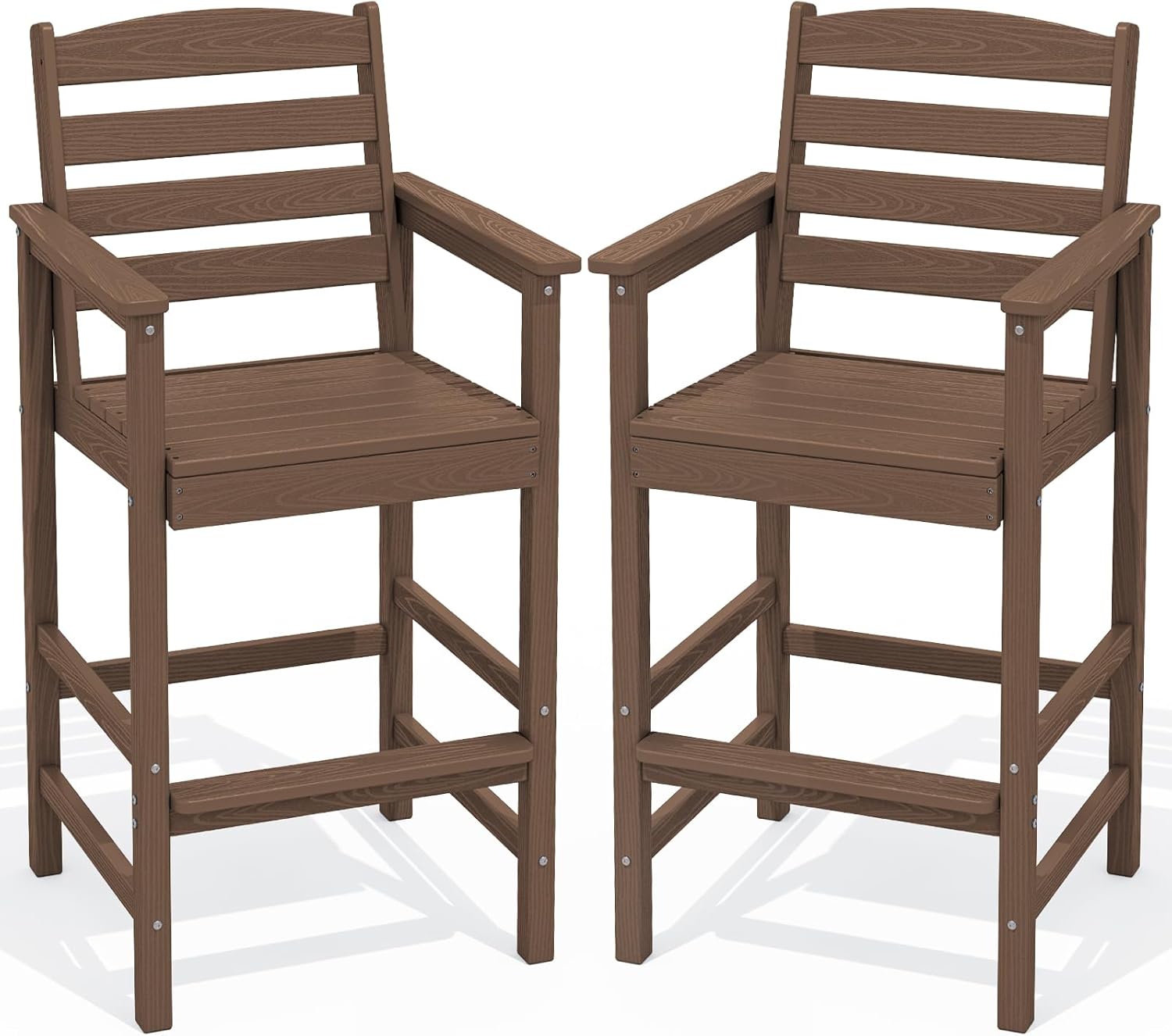 SERWALL Tall Adirondack Chairs Set of 2, Oversize Balcony Adirondack Chairs Set, Outdoor Bar Height Barstools Widened Chair Set for Bistro, Poolside, Garden, Brown
