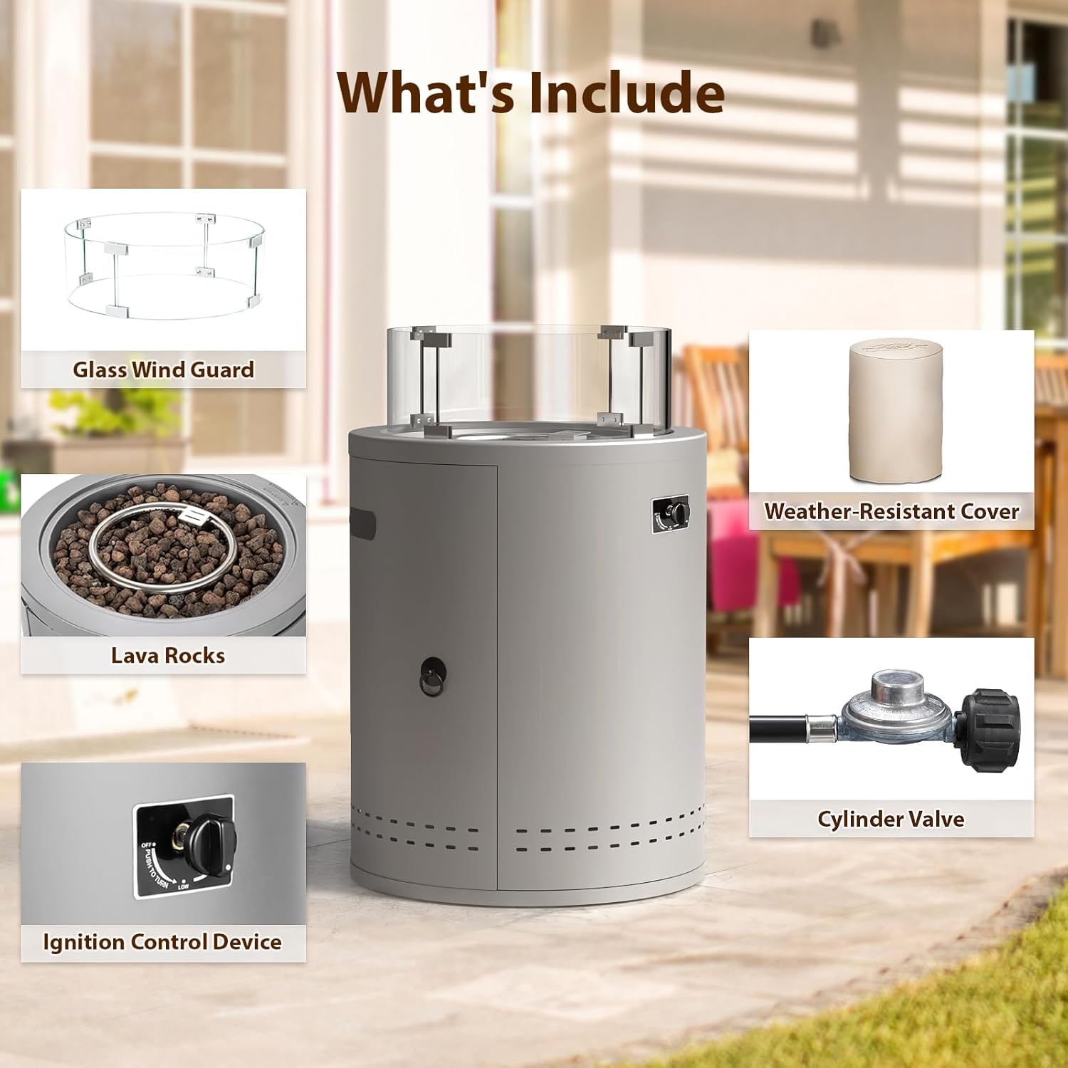 - 【Quick Assembly & All-Accessories Included】 Start enjoying your fire pit in minutes, not hours. Everything you need comes in the box: pre-assembled main unit, lava rocks, glass wind guard, waterproof cover, and clear instructions. The efficient design allows for quick setup, so you can relax and unwind without the hassle.