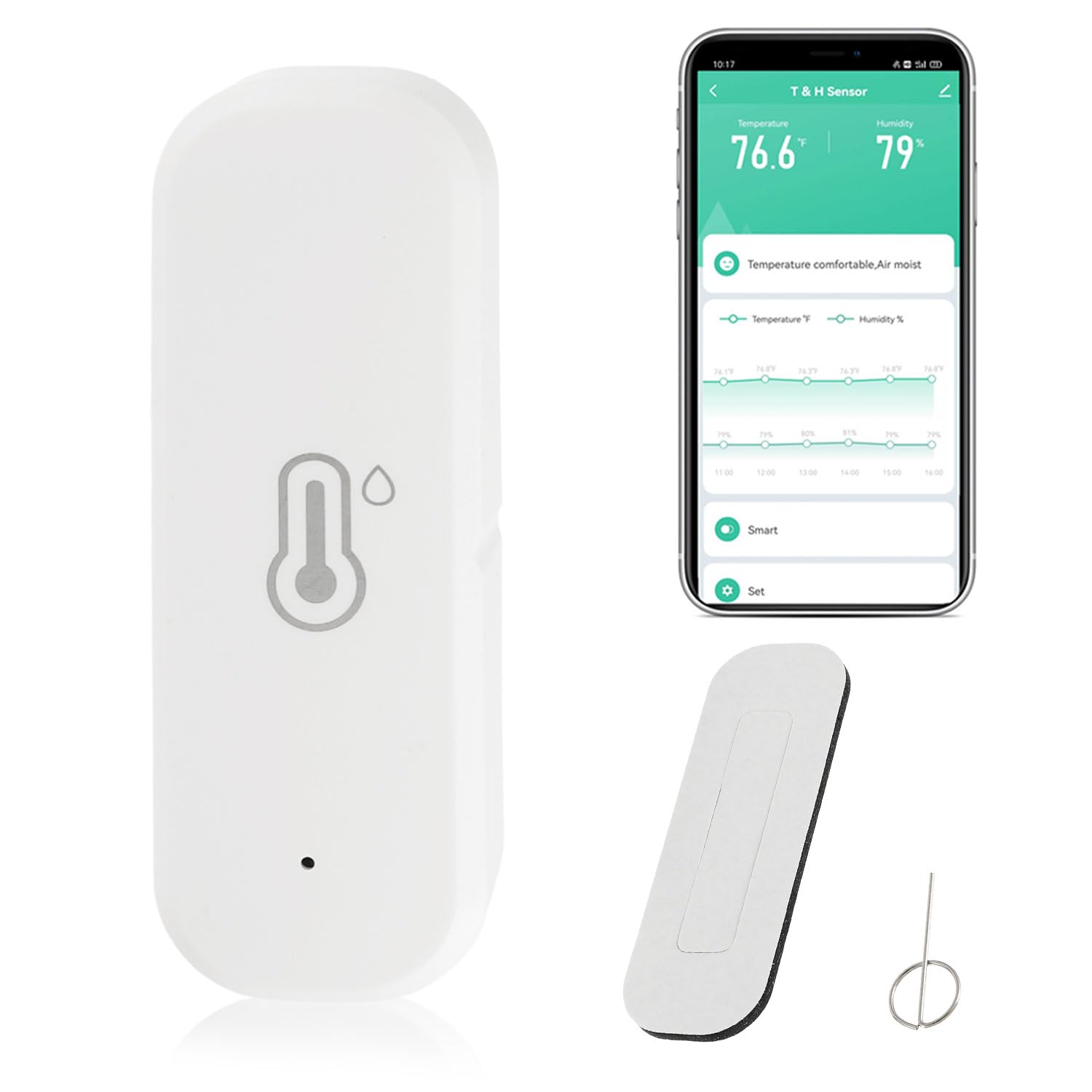 - Easy to use: No need to worry about complicated operations, in 2 minutes or less you can start experiencing the intelligent life! The intelligent temperature humidity sensor supports remote monitoring, free app alerts, Β°F/Β°C readings, display history, and temperature and humidity graph functions. Ideal for use with your humidifier/dehumidifier/air conditioner