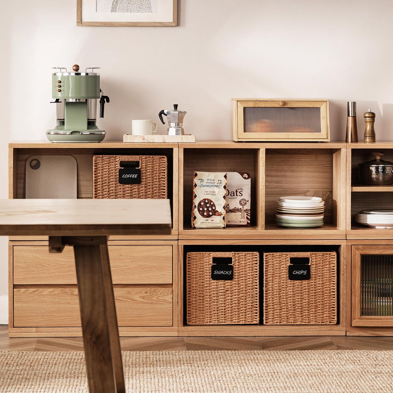 UBBCARE 4 Pack Wicker Basket, 12×12 Storage Cubes with Label, Foldable Cube Storage Bin with Handle, Square Storage Basket for Shelves, Woven Paper Rope Basket for Organizing, Caramel
