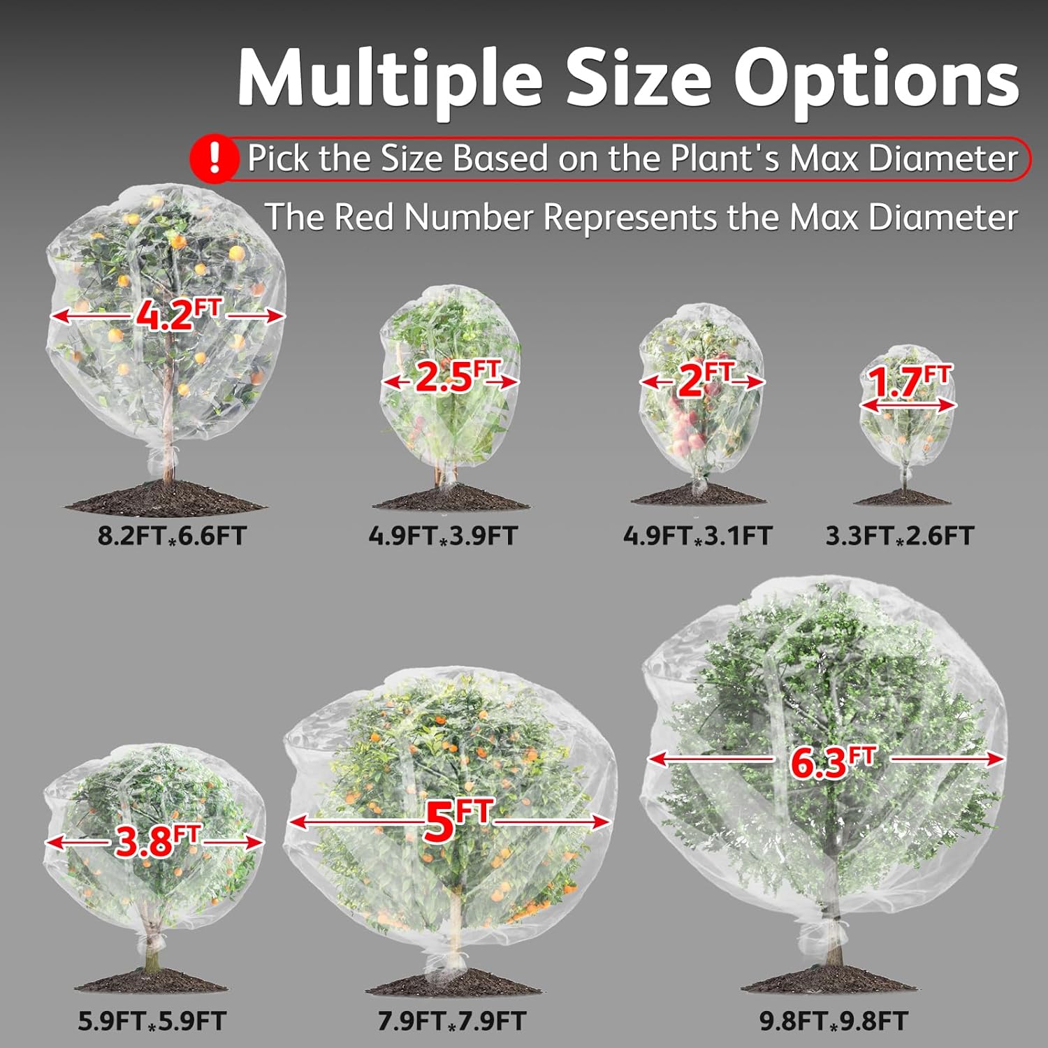 - JOJOLEE Garden Net Kit: This kit includes 4 packs of 4.9 ft(H) x 3.1 ft(W) garden net with a spread diameter of 2 ft. Before buying, please take the time to check the diameter and height of your plant to make sure the insect netting is sufficient to cover it.