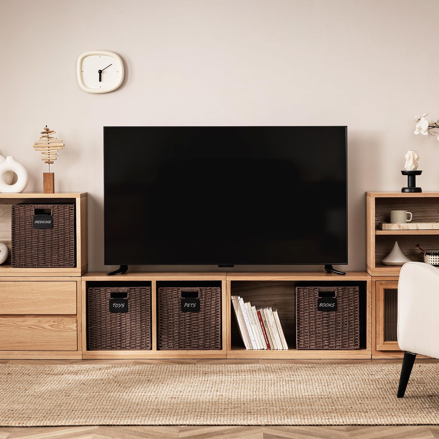 UBBCARE 4 Pack Wicker Basket, 13×13 Storage Cubes with Label, Foldable Cube Storage Bin with Handle, Square Storage Basket for Shelves, Woven Paper Rope Basket for Organizing, Brown