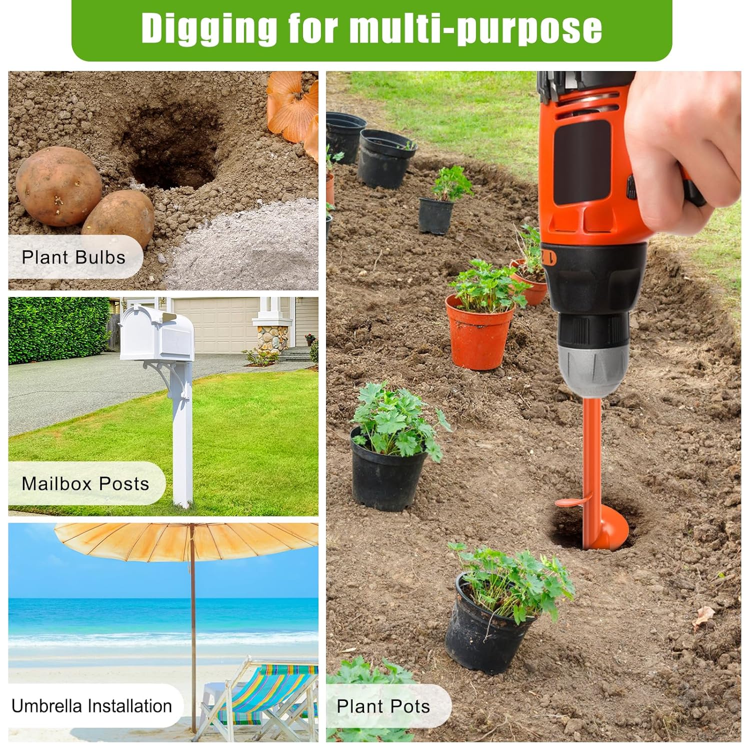 - πΎππ π π¨ππππππππππ: This auger post hole digger is a valuable addition to any gardener's toolkit, ideal for digging, mixing, and planting with ease; such as planting bulbs, vegetables and flowers, tubers, rhizomes, trees, reducing the need for post hole diggers to scoop and remove soil, making it more efficient to use a shovel and dig trenches.