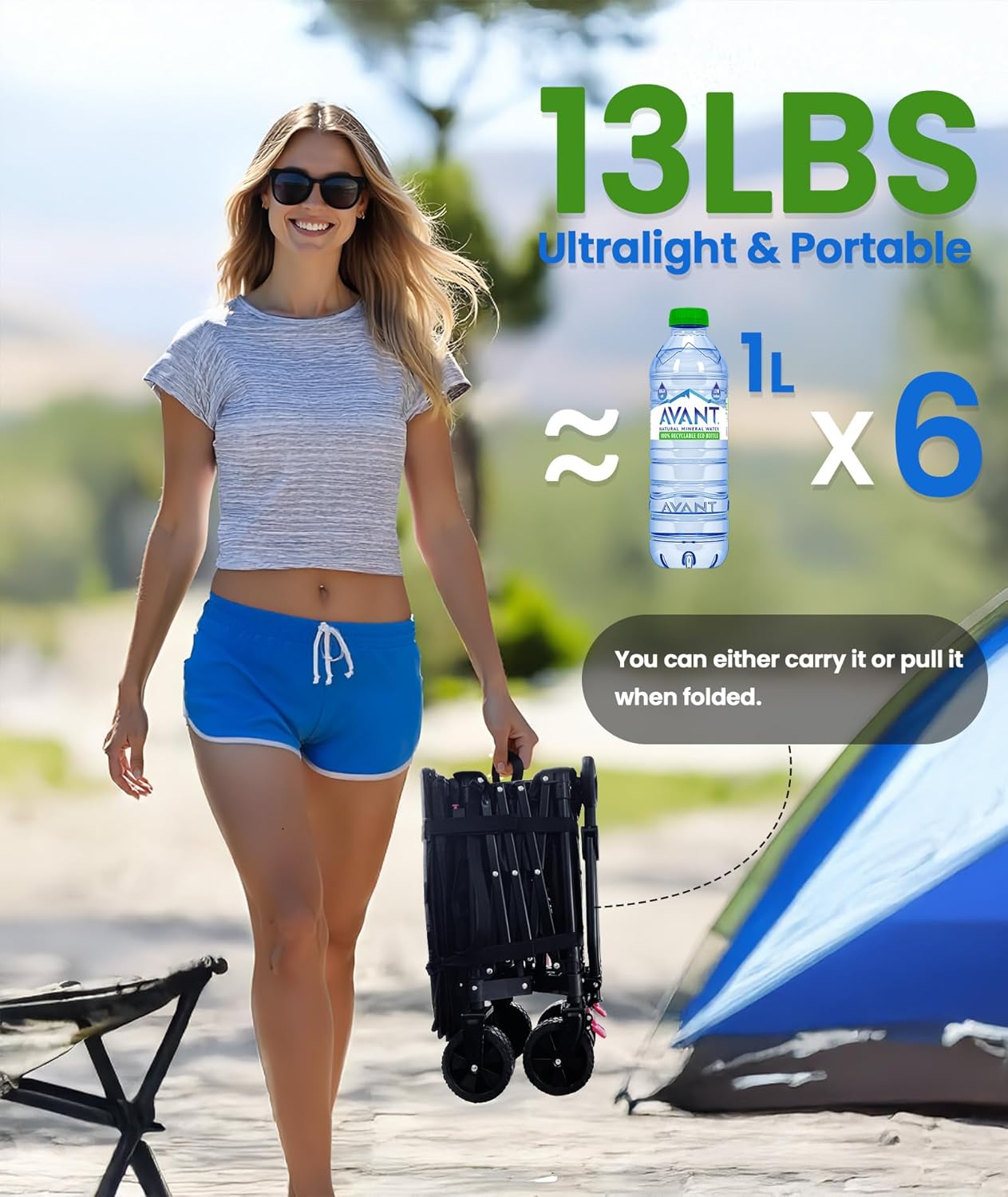 - Multi-Terrain Wheels with Brakes: Equipped with durable, all-terrain wheels and a reliable braking system, this collapsible wagon is designed to handle various surfaces with ease and securely. Whether on grass, gravel, or pavement, the folding wagon ensures a smooth ride and controlled stops, making it the ultimate companion for all your outdoor adventures
