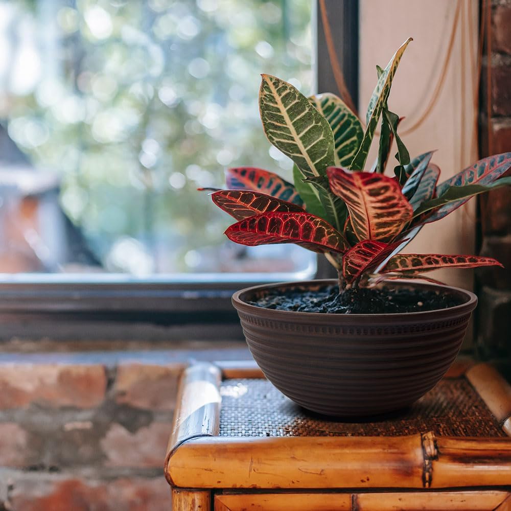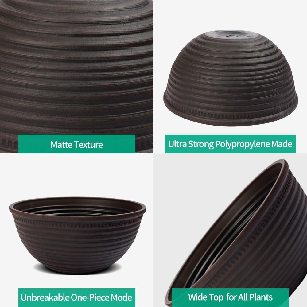 2 Pack 10 Inch Plant Pots,Durable Decorative Flower Pots Planters with Drainage Hole for Indoor and Outdoor Plants,Flowers,Succulents, Brown