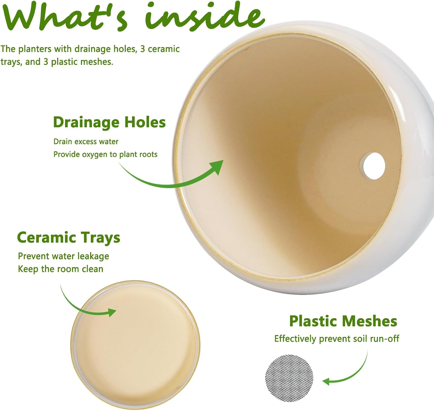 - Drainage Holes and Accessories: Each ceramic planter has a drainage hole at the bottom, a mesh, and a ceramic tray for collecting water. This will provide ample oxygen to the plants