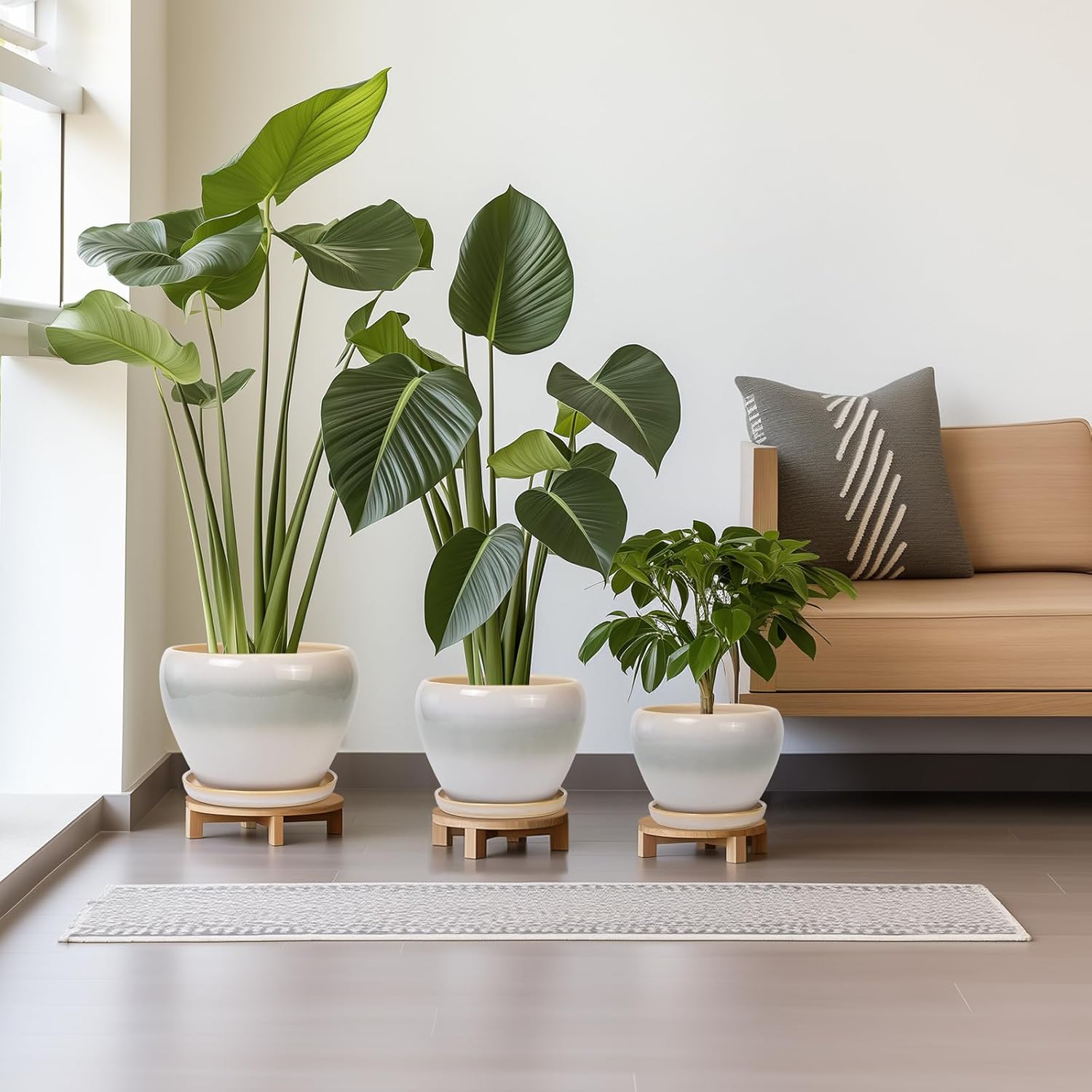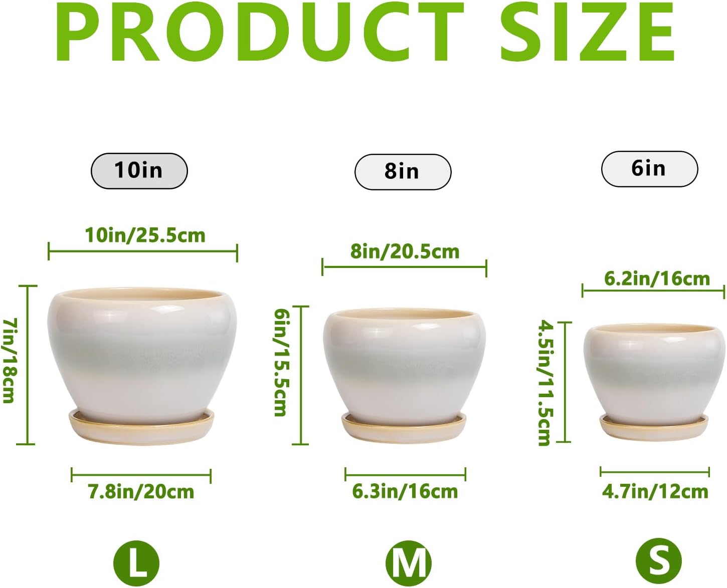 - Different Sizes: The large planter (10" D X 7" H), medium plant pot (8" D X 6" H), and small flower pot (6" D X 4.5" H). This planters set fits olive tree, snake, bonsai, money tree, monstera, alocasia, pachira aquatica, ficus lyrata, palms, and more