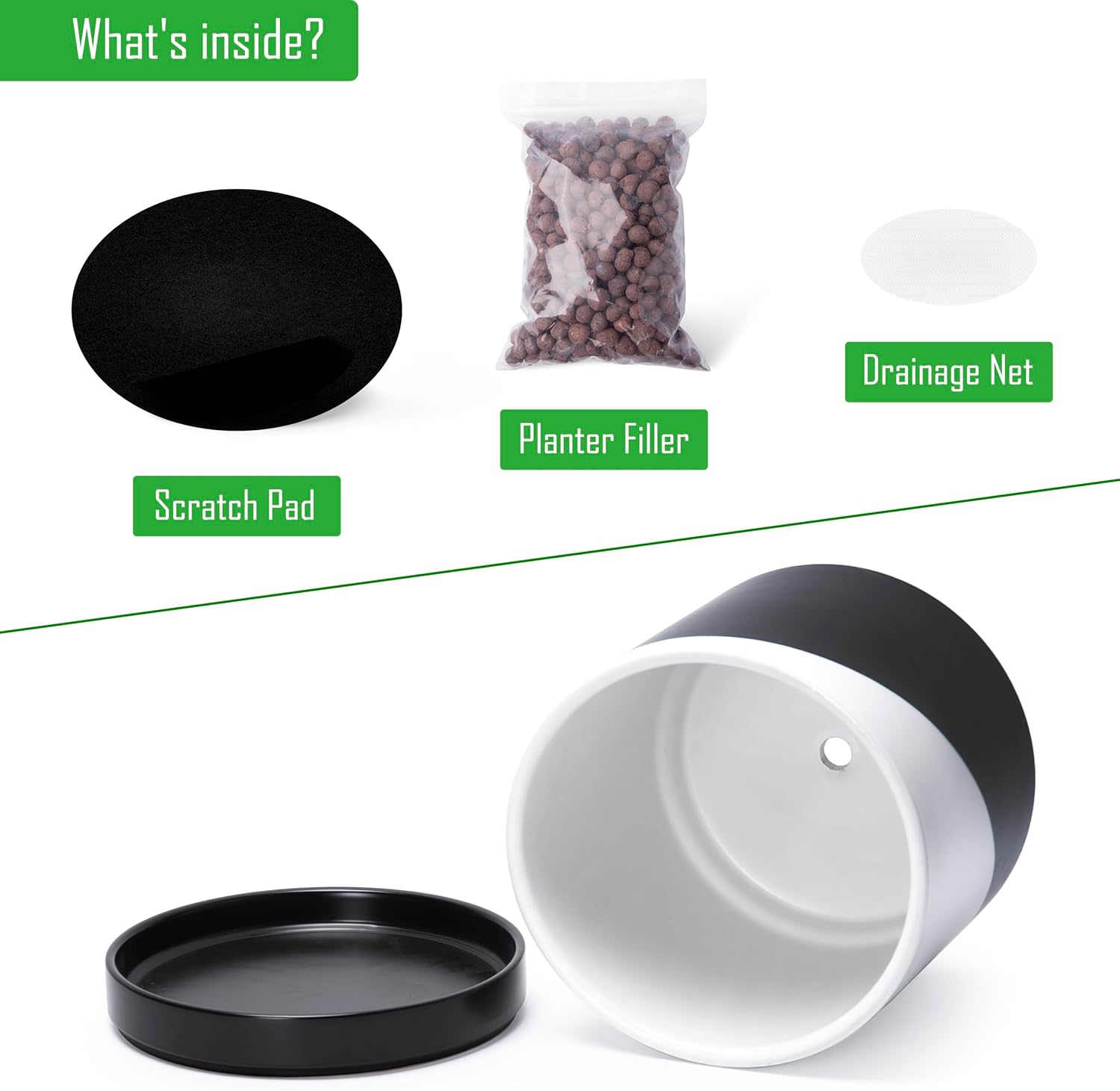 • Thoughtful Functionality: Includes a drainage hole to prevent overwatering, plus a mesh drainage net and scratch pad for added convenience.