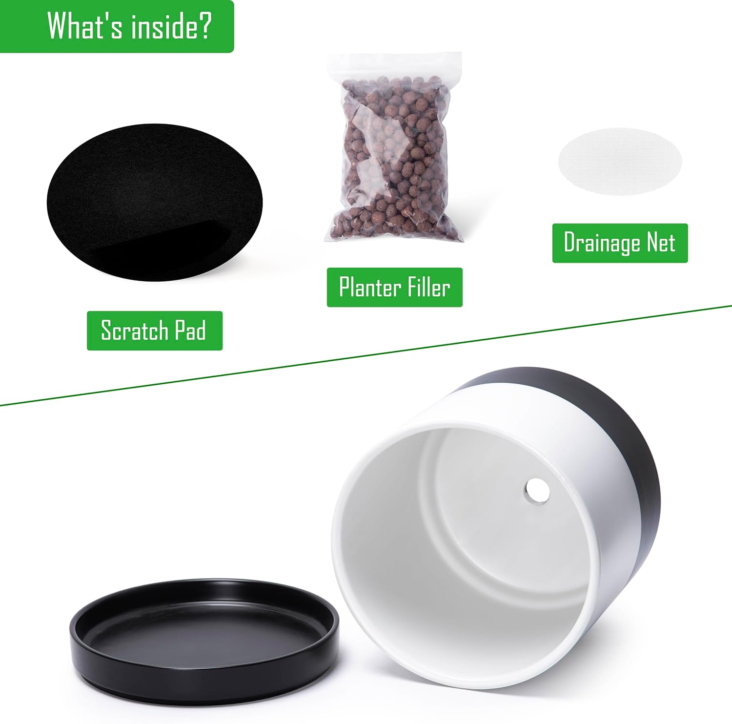 • Thoughtful Functionality: Includes a drainage hole to prevent overwatering, plus a mesh drainage net and scratch pad for added convenience.
