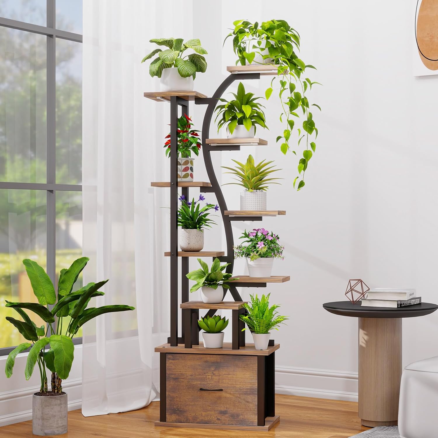 - 【9 Tier,65" Large Plant Stand】More than just a plant holder, this indoor plant shelf doubles as a bookshelf, display rack, or storage unit. Whether used in the bedroom, office, or as a balcony plant stand, its sleek modern design adds both functionality and elegance to your home.