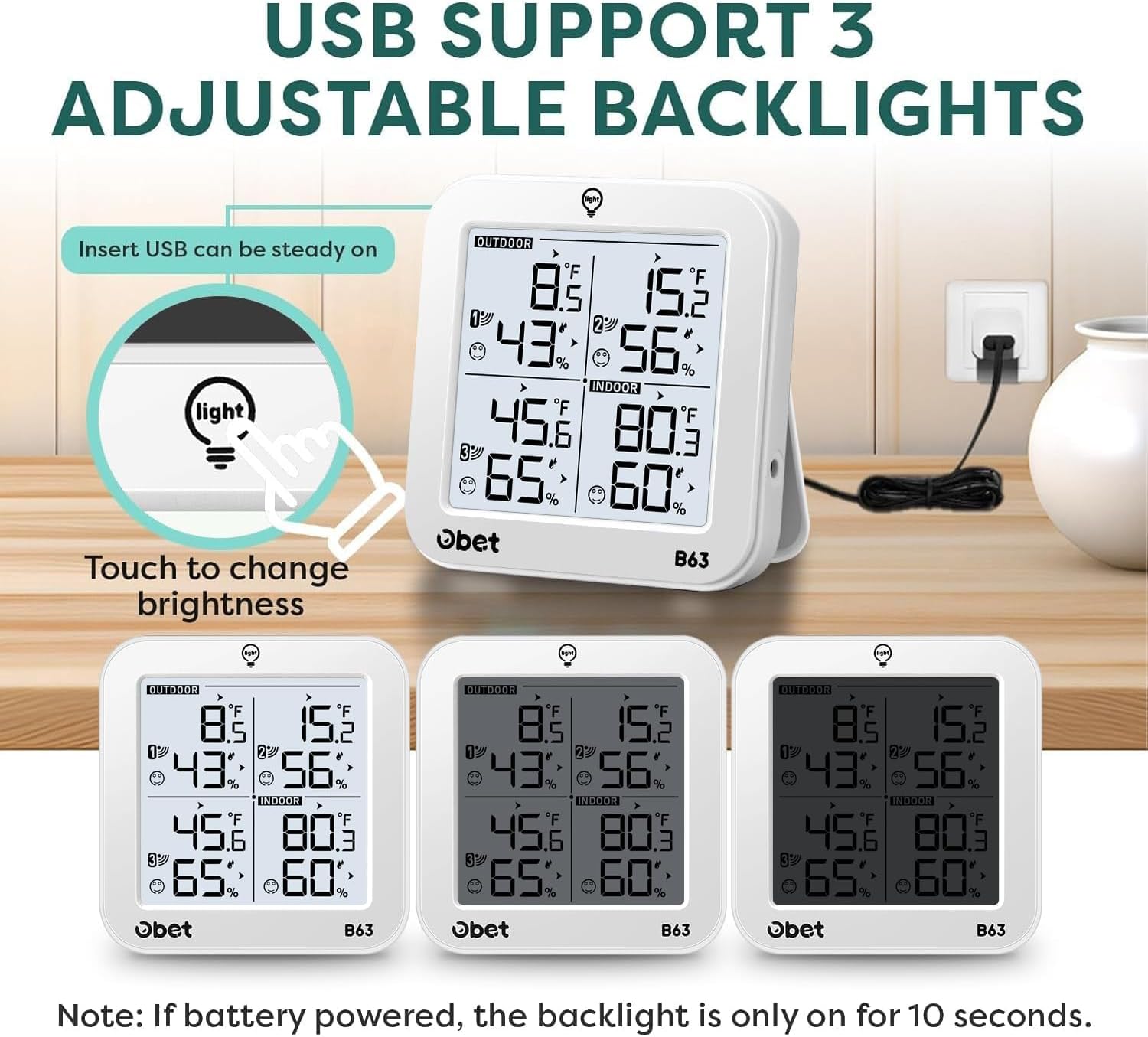 - USB Support 3 Adjustable Brightness: When connected via USB, the backlight stays on continuously for clear visibility (high, low, and off). On battery power (battery not included), it turns off after 10s to save energy.