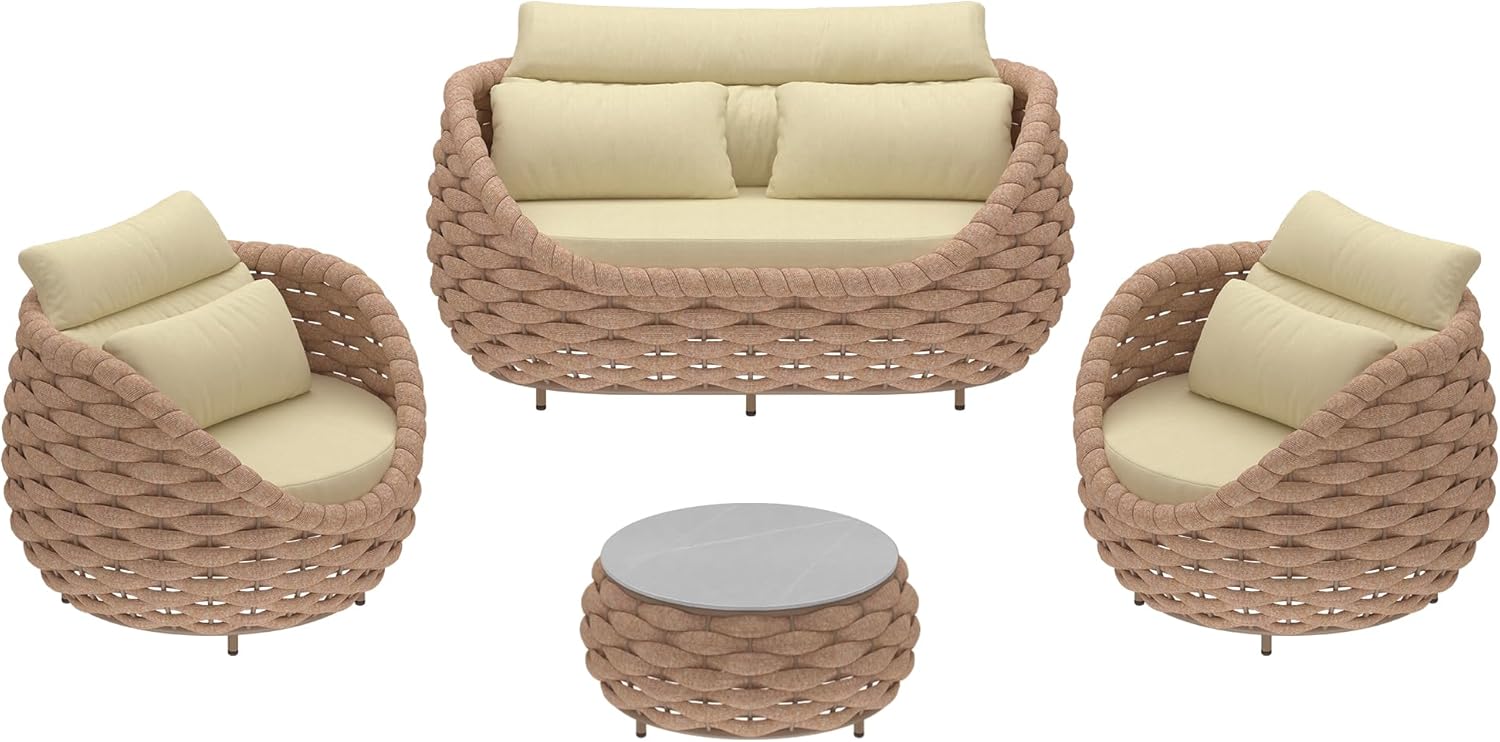 - Stylish & Multi-functional Design: Inspired by bird nests, our outdoor patio furniture set flaunts a modern yet warm look, fitting perfectly in any indoor or outdoor space. Hand-woven with Textilene rope, it exhibits an exquisite craftsmanship. Its versatility allows you to create a cozy corner in your patio, garden, or even living room effortlessly.