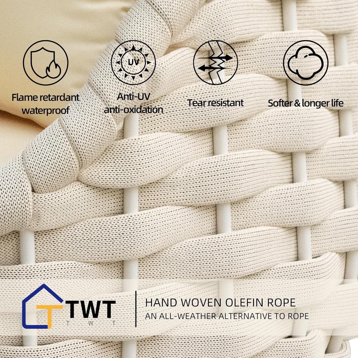 - Stylish & Multi-functional Design: Inspired by bird nests, our outdoor patio furniture set flaunts a modern yet warm look, fitting perfectly in any indoor or outdoor space. Hand-woven with Olefin rope, it exhibits an exquisite craftsmanship. Its versatility allows you to create a cozy corner in your patio, garden, or even living room effortlessly.