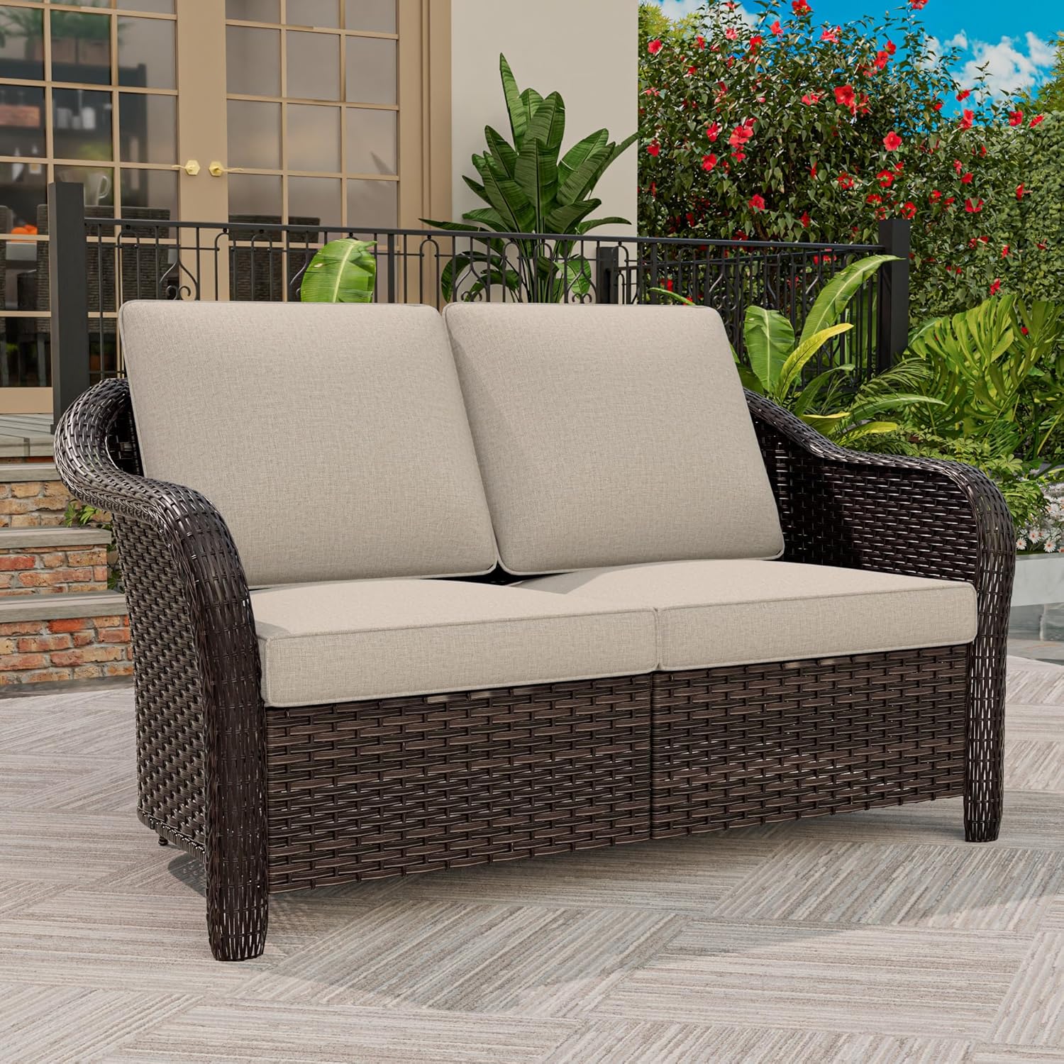 - ERGONOMICE DESIGN: Our patio wicker Loveseat is designed of wide armset and high backrest. Better for your body while you sit. Feel the comfort of the special design.