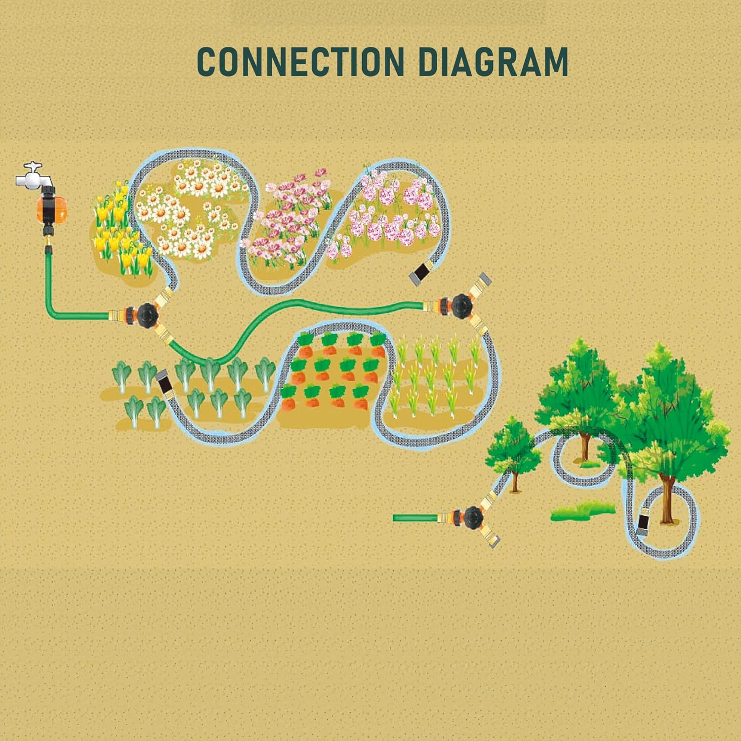 - Linkable Drip Hose: The flat soaker hose is easy to place and move around your garden. This end-to-end connectable drip hose is flexible and versatile, suitable for above-ground use or burying under mulch or soil. It allows for easy connection of multiple hoses and works seamlessly with timers