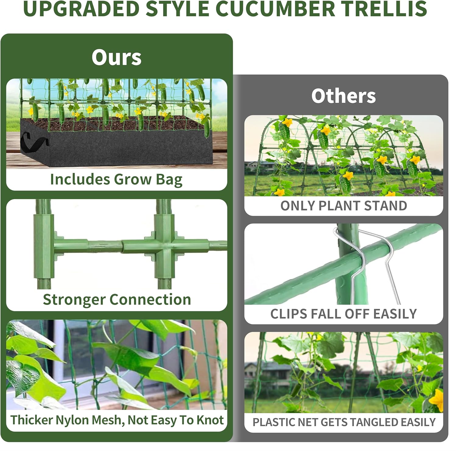 - PREMIUM MATERIALS: The trellis for cucumbers features connection tubes made of high-quality stainless steel, coated with durable plastic. Compared to other purely plastic cucumber trellis for garden options, it offers greater strength and support