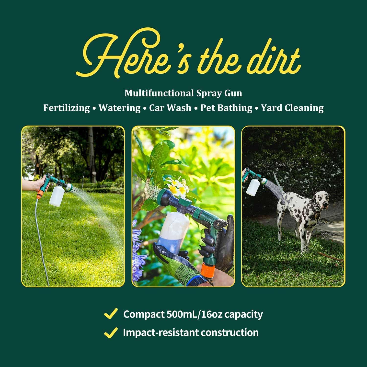 - ๐ From Garden to Garage: Use this versatile hose-end sprayer for watering plants, fertilizing lawns, and cleaning outdoor spaces.