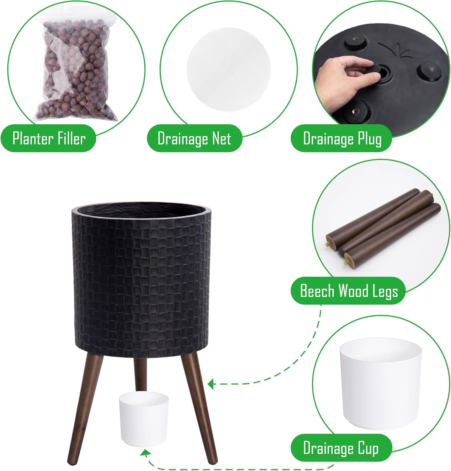 - Sturdy Wooden Legs: Supported by sleek wooden legs, this planter offers a stable base and enhances its overall aesthetic appeal.