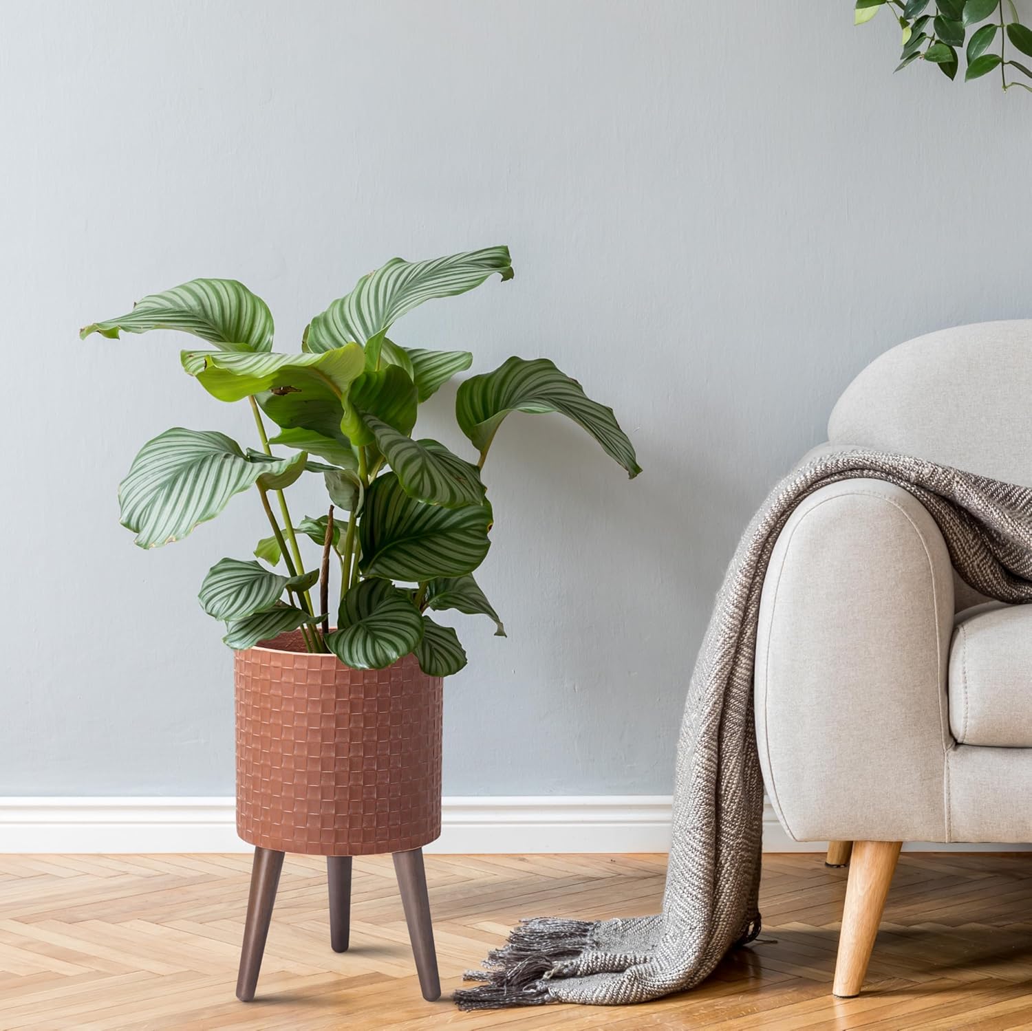 - Sturdy Wooden Legs: Supported by sleek wooden legs, this planter offers a stable base and enhances its overall aesthetic appeal.