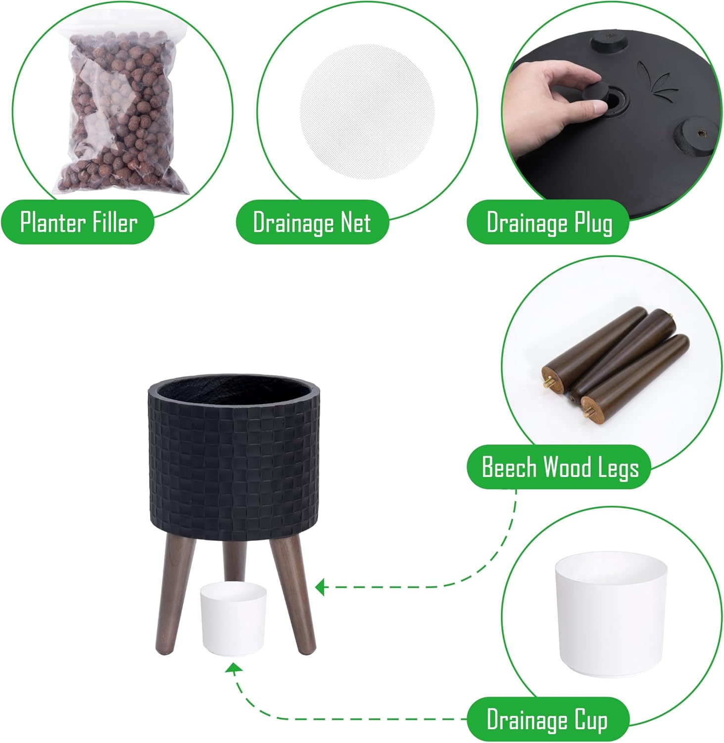 - Sturdy Wooden Legs: Supported by sleek wooden legs, this planter offers a stable base and enhances its overall aesthetic appeal.