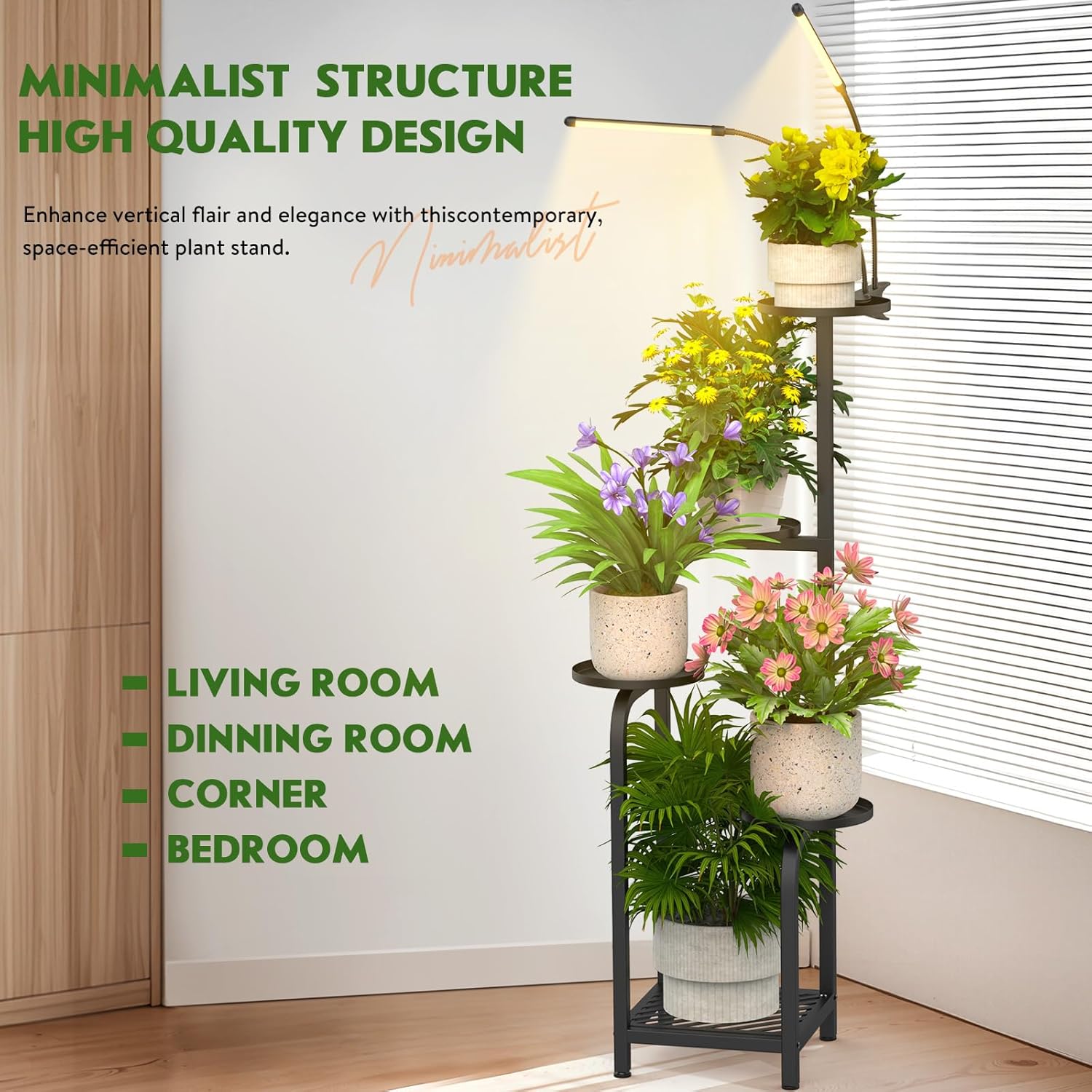 - 【Versatile for Any Indoor/Outdoor Space】Transform living rooms, offices, balconies, or bedrooms into green sanctuaries. This corner plant stand doubles as a decorative shelf, adding natural charm to modern interiors while optimizing light exposure for sun-loving plants