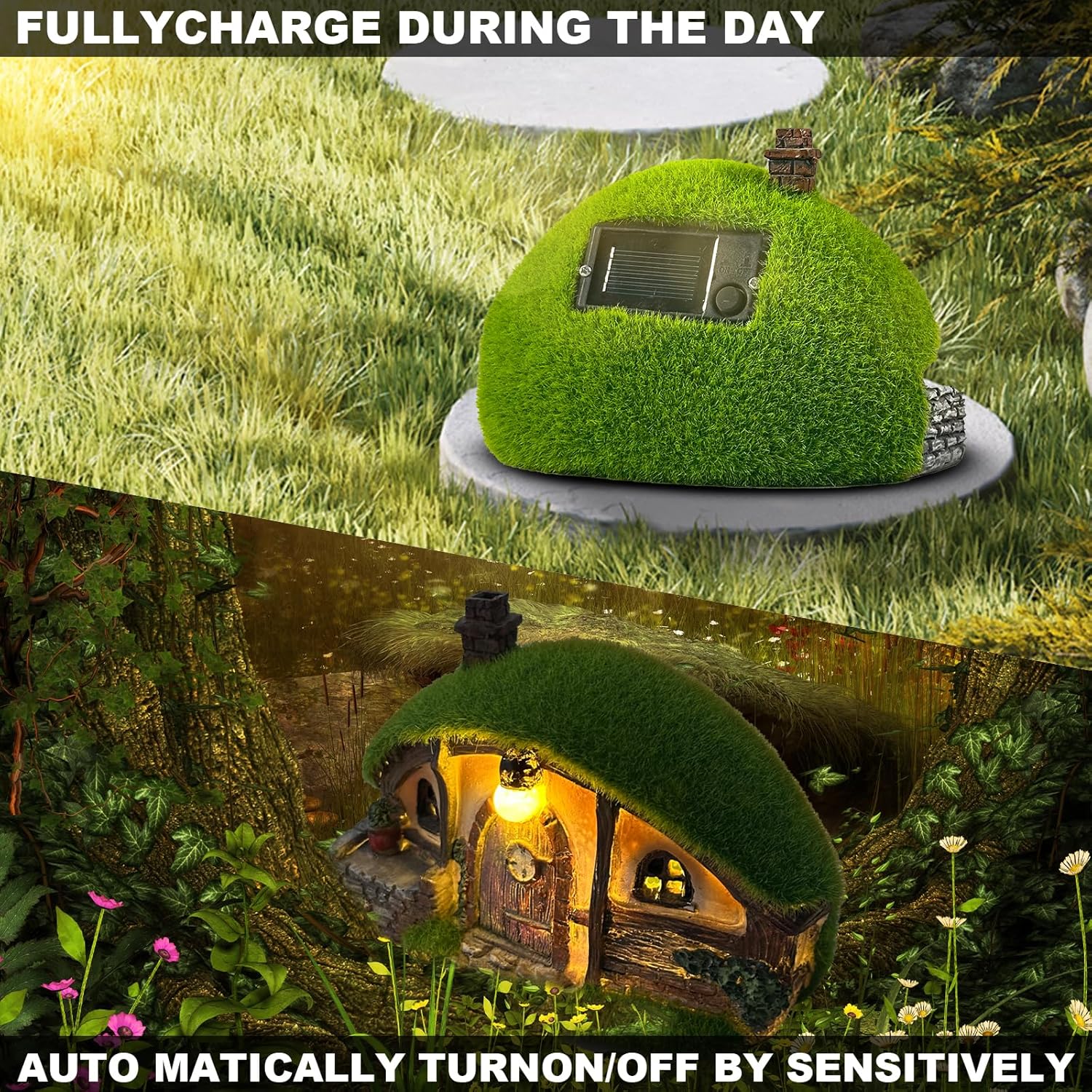 - Premium Waterproof Design:The Solar House is made from high-quality resin, with tightly connected parts for superior waterproof performance. The hand-painted design is coated with a protective layer, ensuring the outdoor sculpture is sturdy, durable, and resistant to fading, even in harsh outdoor conditions